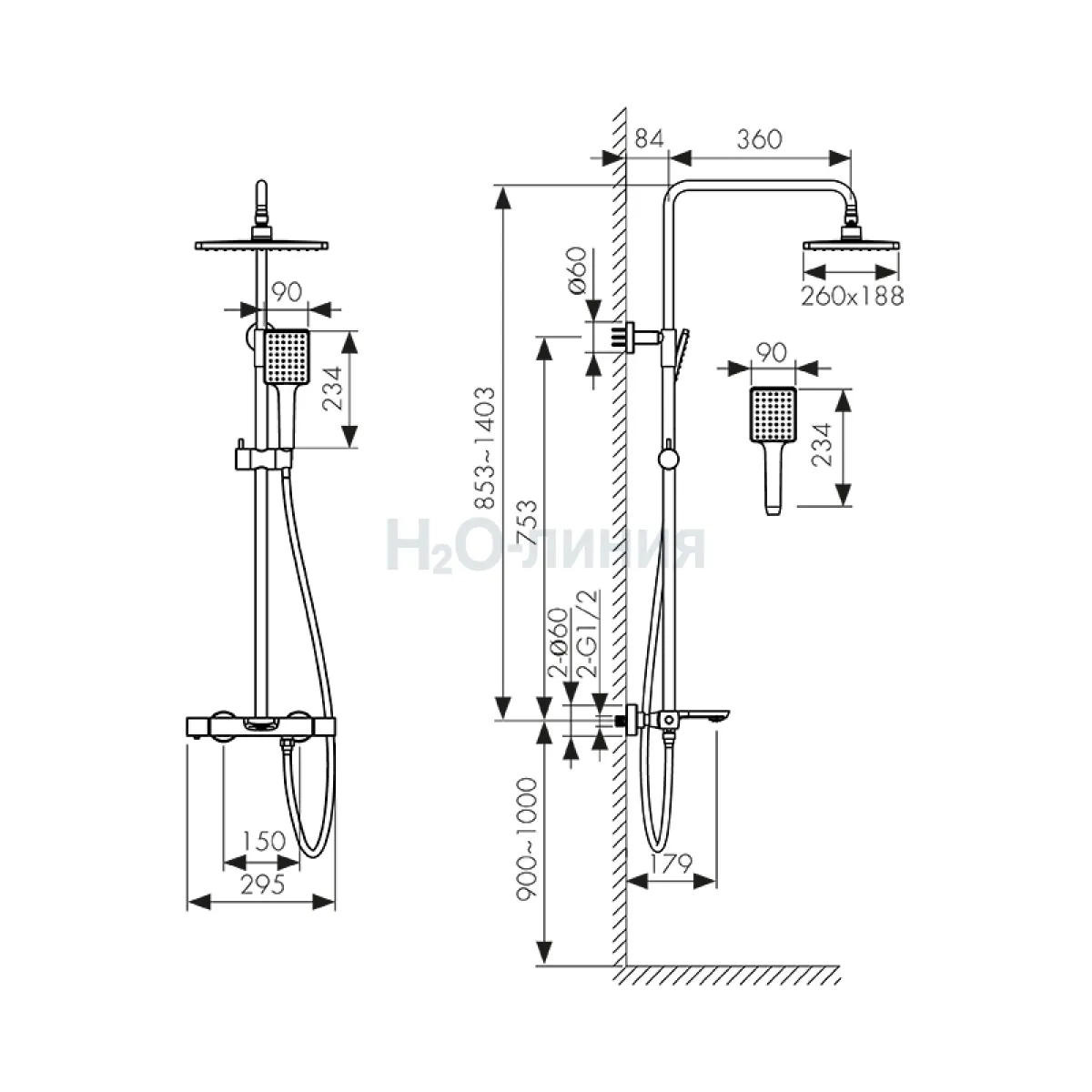 Длина излива, мм: