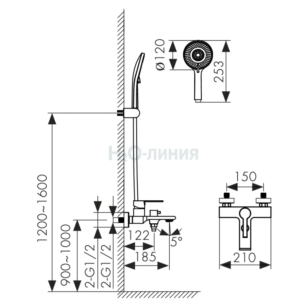 смеситель, лейка, шланг, держатель для лейки, отражатели, эксцентрики