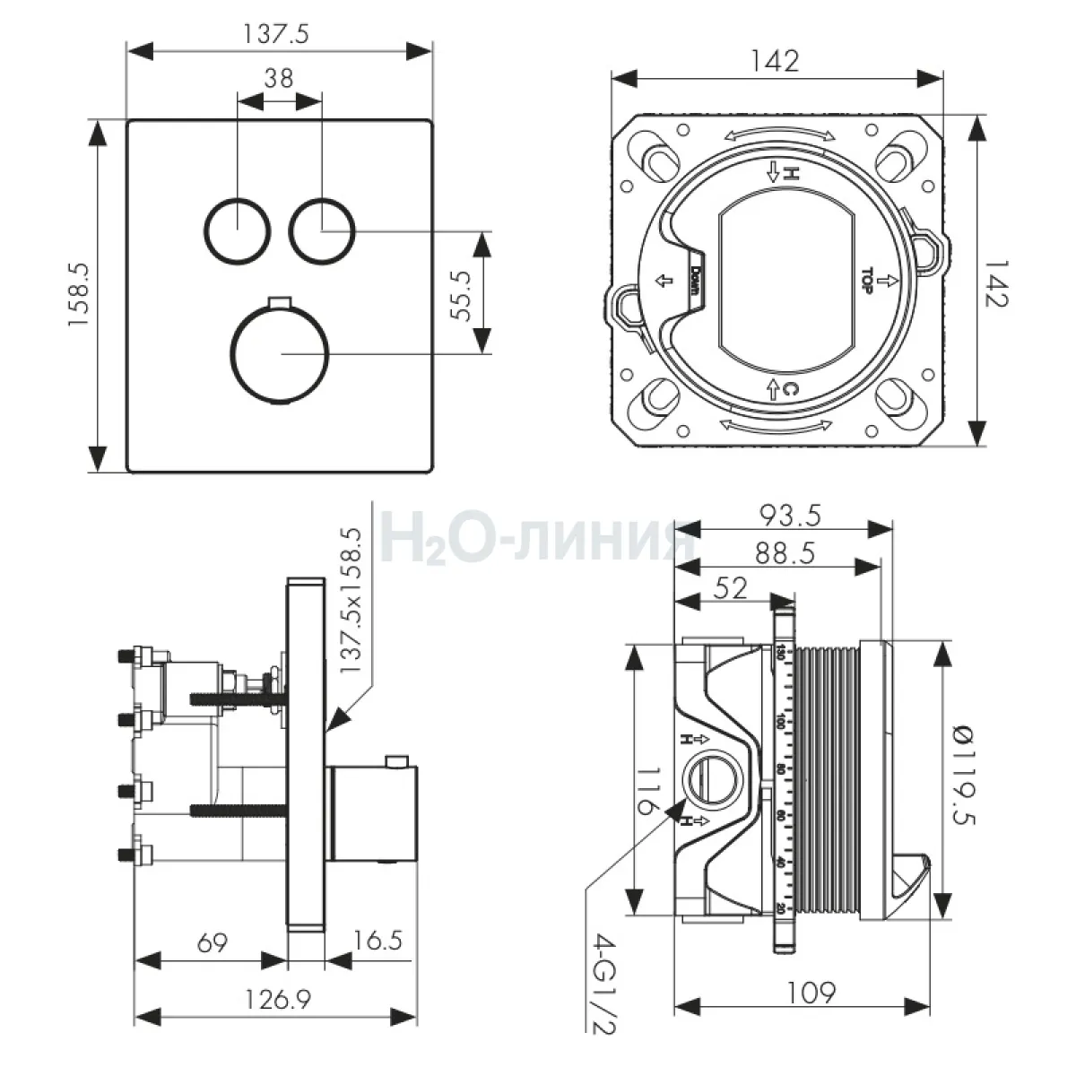 смеситель скрытого монтажа, скрытая монтажная часть, крепления