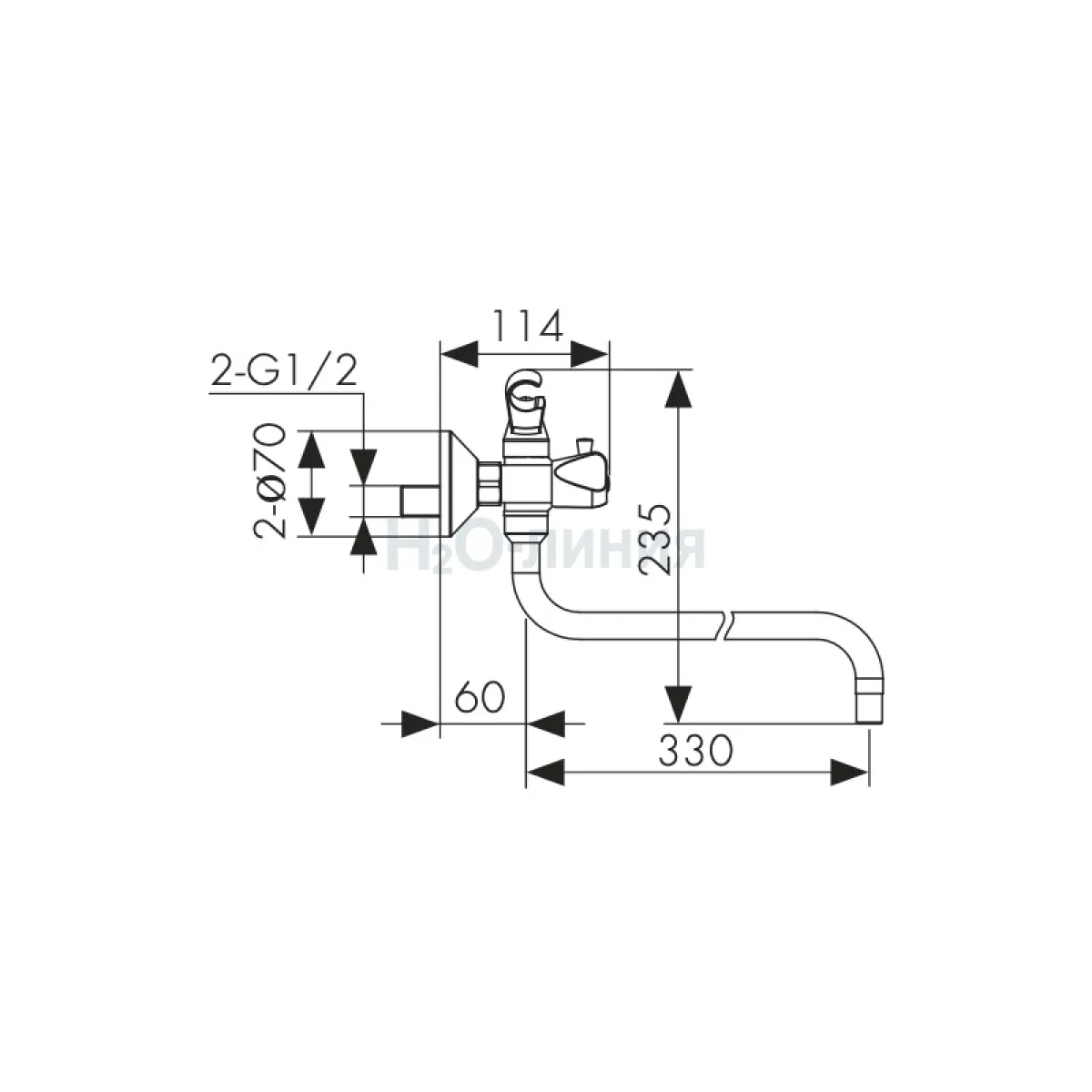 Длина излива, мм: