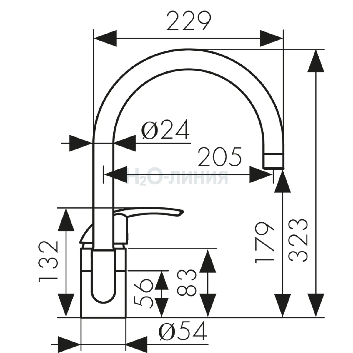 Высота излива, мм: