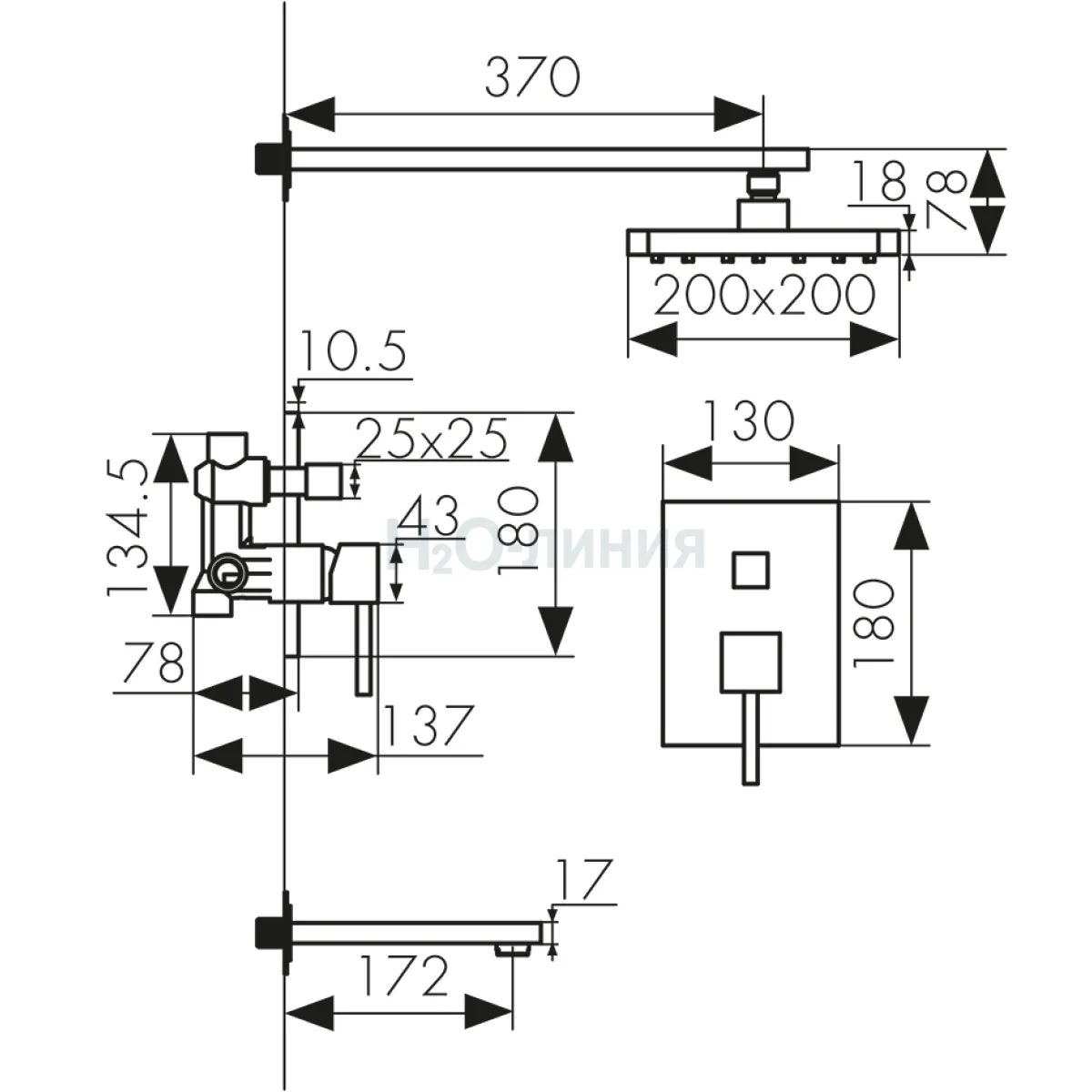 Длина излива, мм: