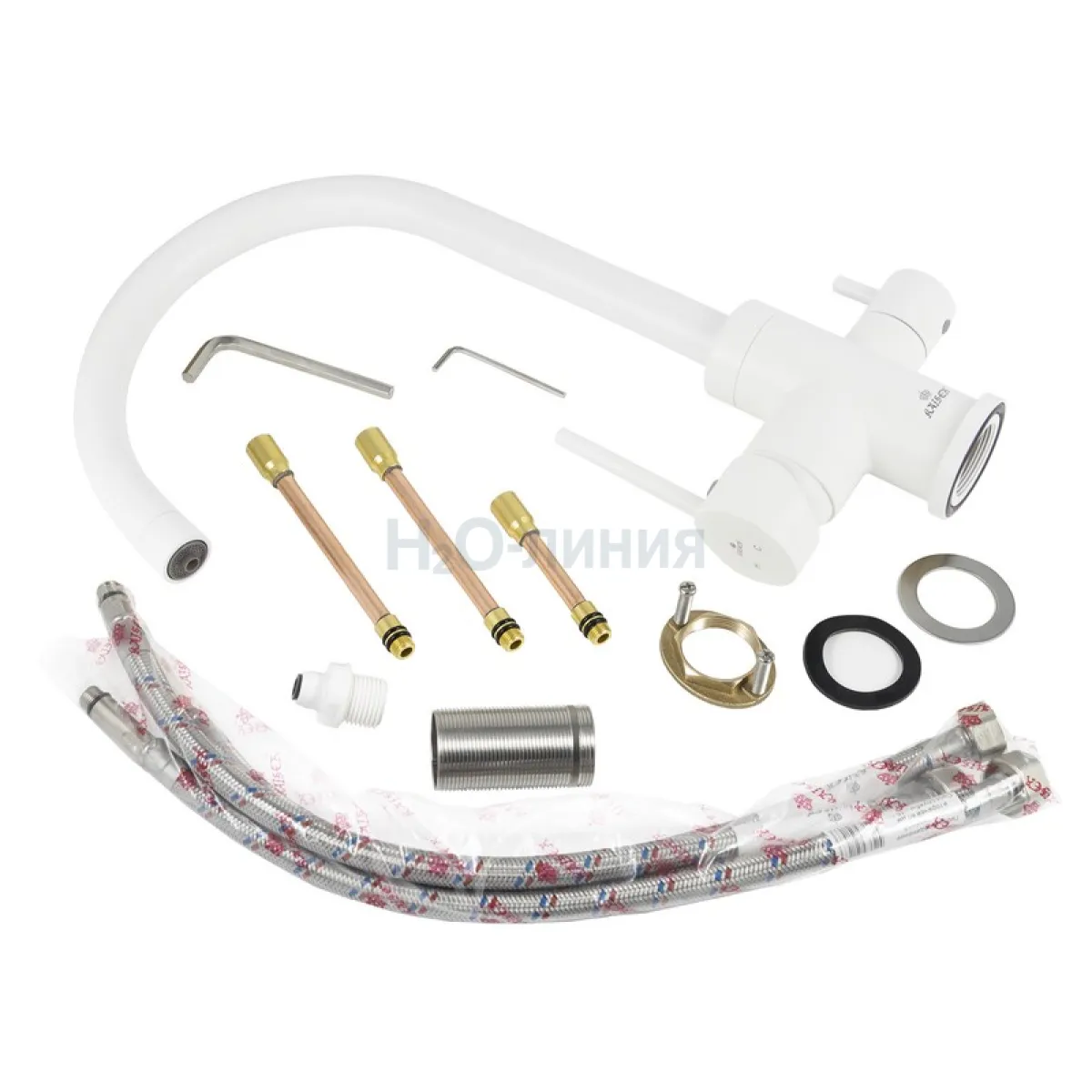 Комплектация смеситель, гибкая подводка, крепления