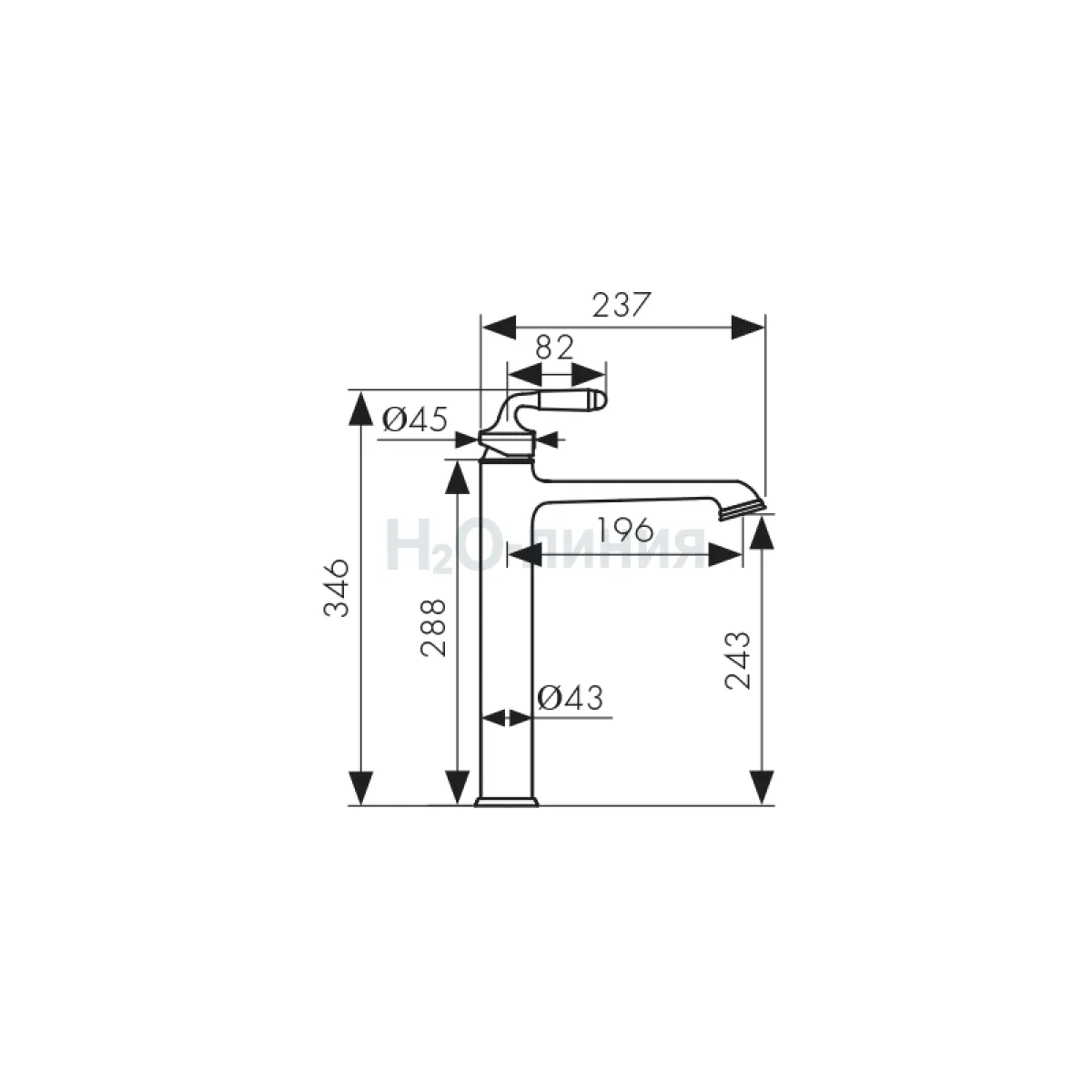 Высота излива, мм:
