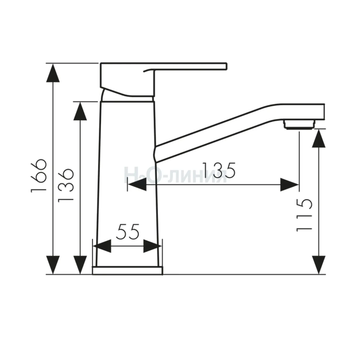 Высота излива, мм: