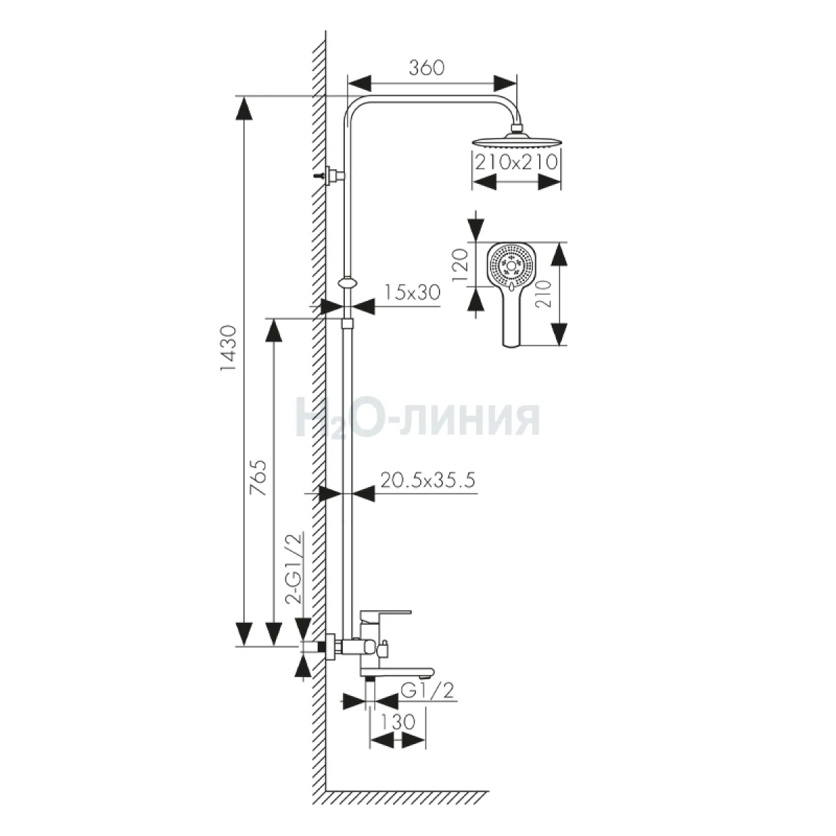 Длина излива, мм: