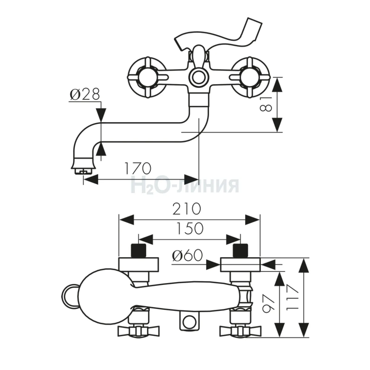 Длина излива, мм: