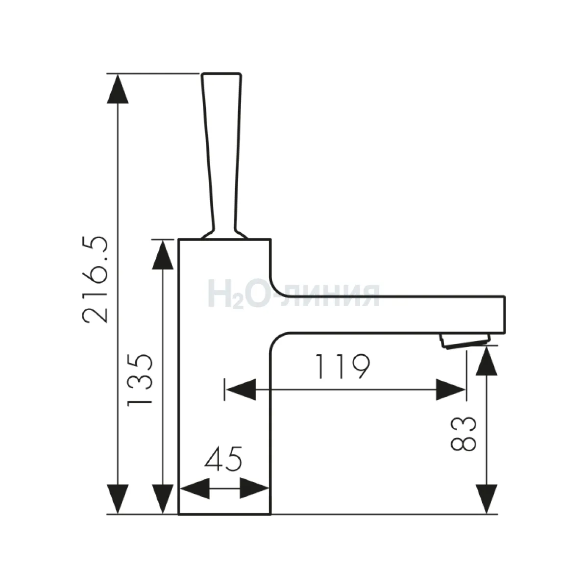 Высота излива, мм: