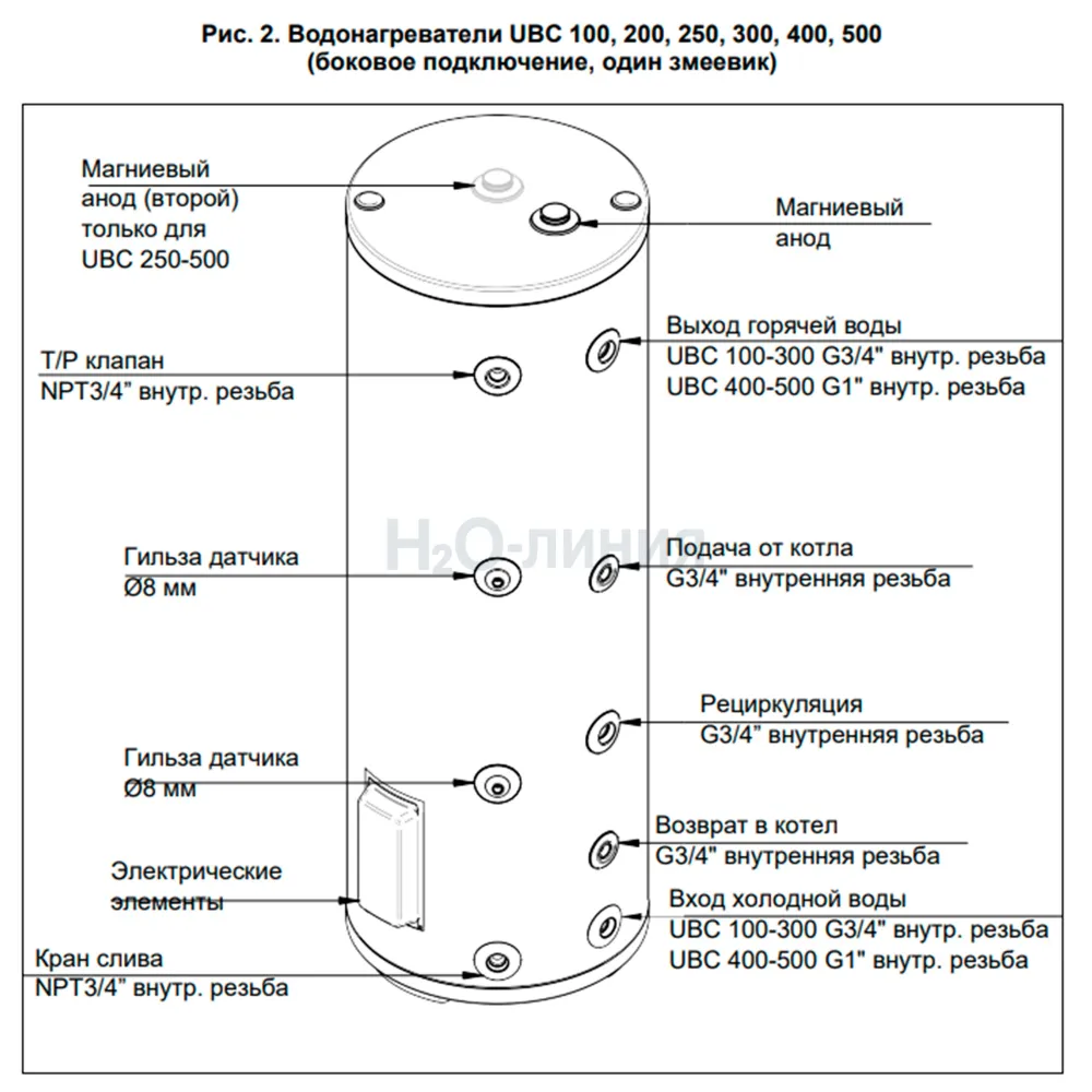 *У всех моделей от 250 литров и у моделей с двумя змеевиками установлены два магниевых анода