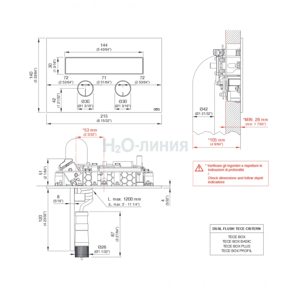 Фронтальное расположение панели смыва