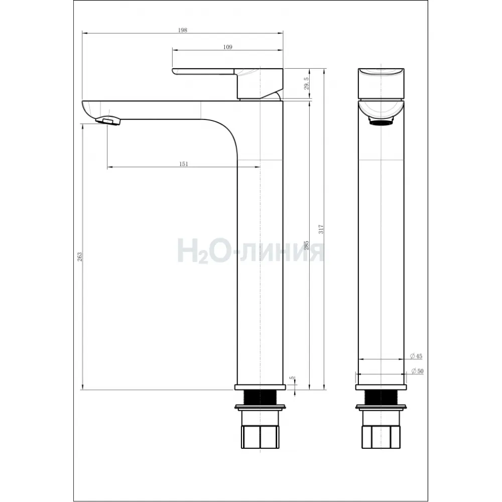 Высота смесителя 31,5 см