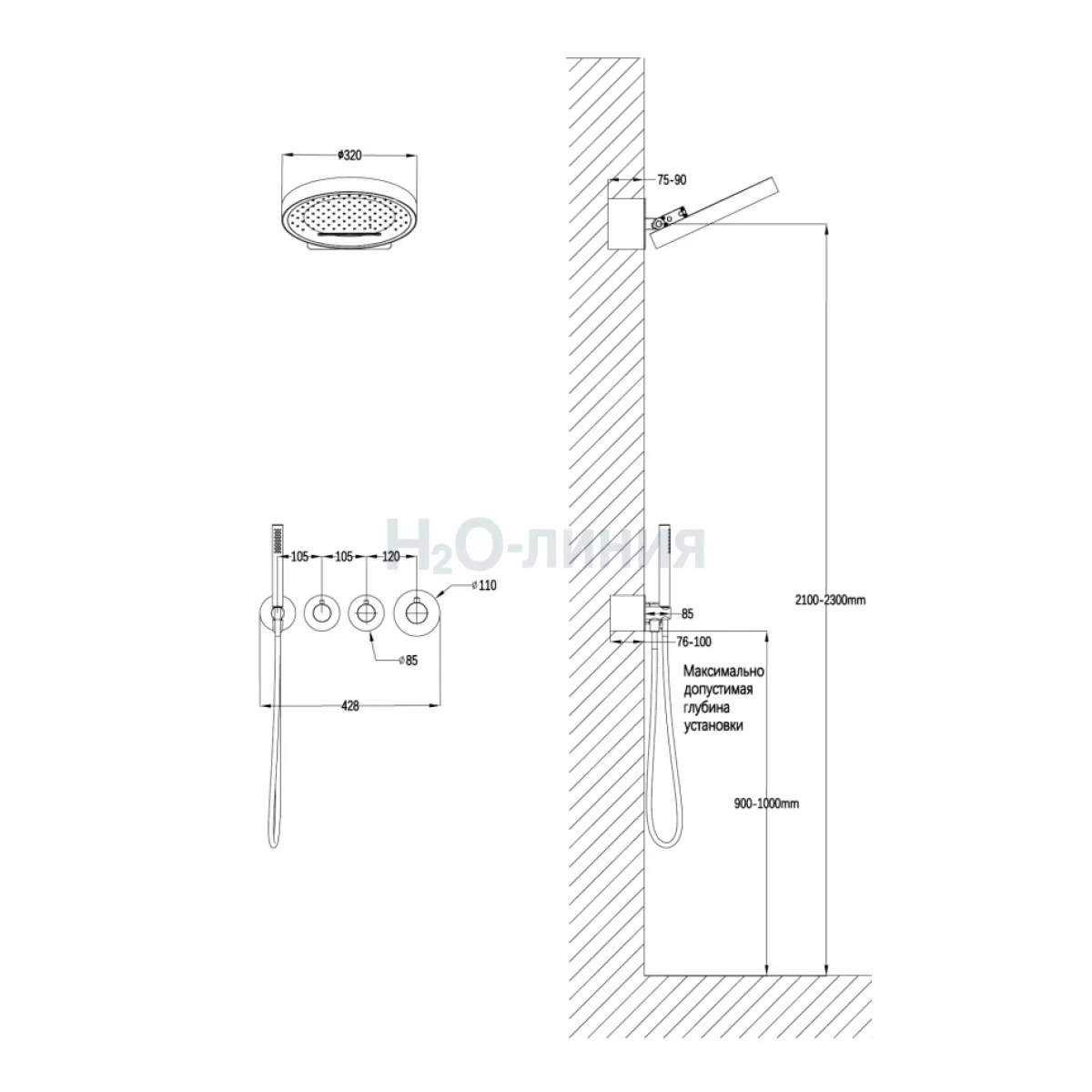 Душевая система скрытого монтажа Grocenberg GB5020CR с Термостатом Vernet (Франция)