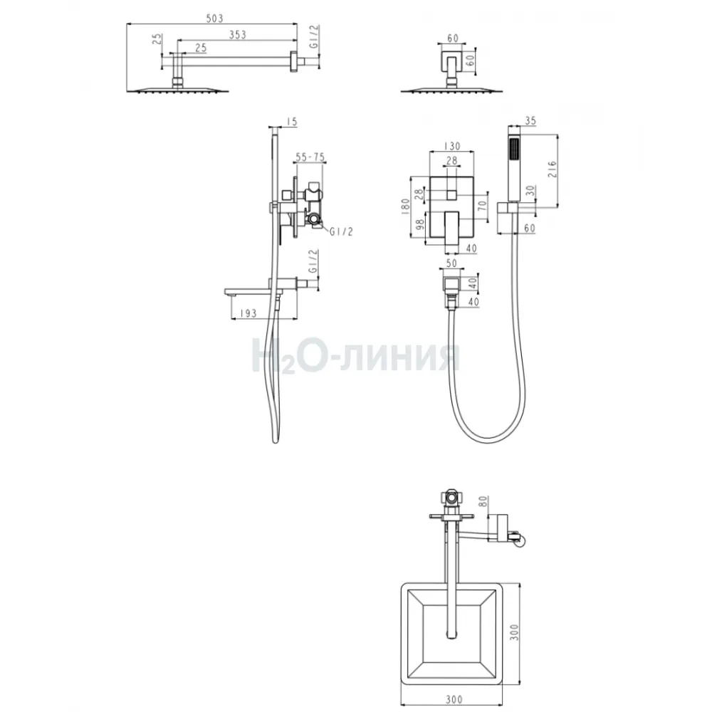 Душевая система скрытого монтажа Grocenberg GB5089GO-1 Золото