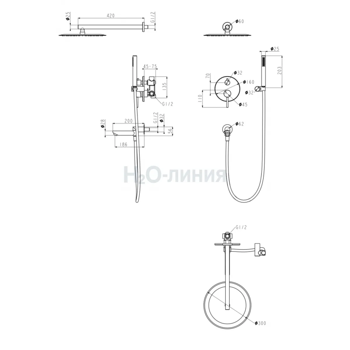 Душевая система скрытого монтажа Grocenberg GB5099NK-1 Никель