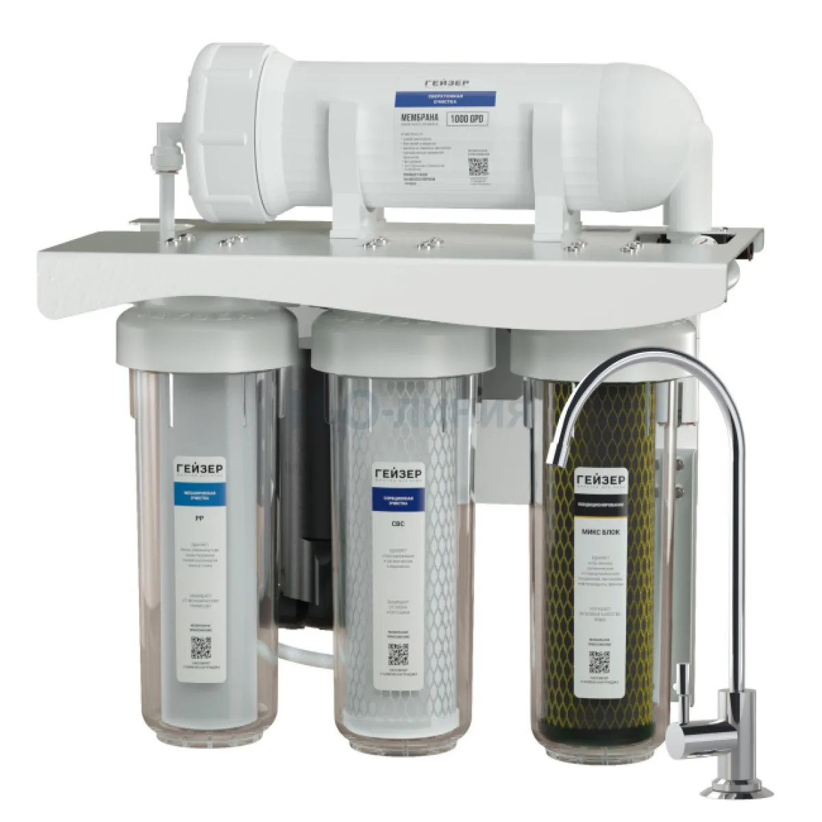 Система обратного осмоса Гейзер Престиж Про 1000 предназначена для получения воды высокой степени очистки. Фильтр снижает до питьевых норм общее солесодержание (минерализацию) и количество солей жесткости.
