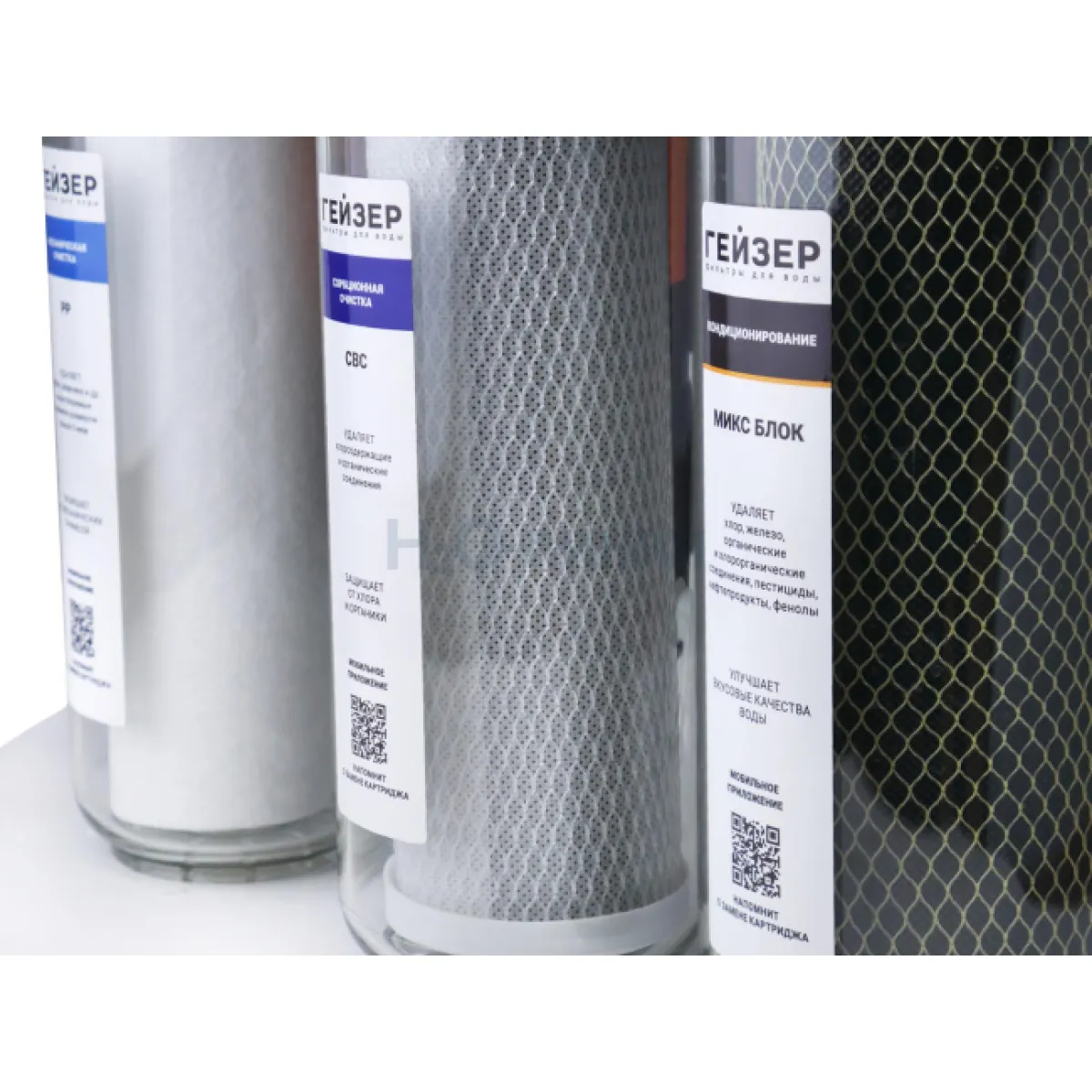 IV ступень - Микс Блок 10SL: картридж для кондиционирования воды. Угольный картридж МИКС БЛОК (0,6 МКМ) с ионообменным материалом Каталон удаляет хлор, железо, органические и хлорорганические соединения, пестициды, нефтепродукты, фенолы. Улучшает вкусовые качества воды.