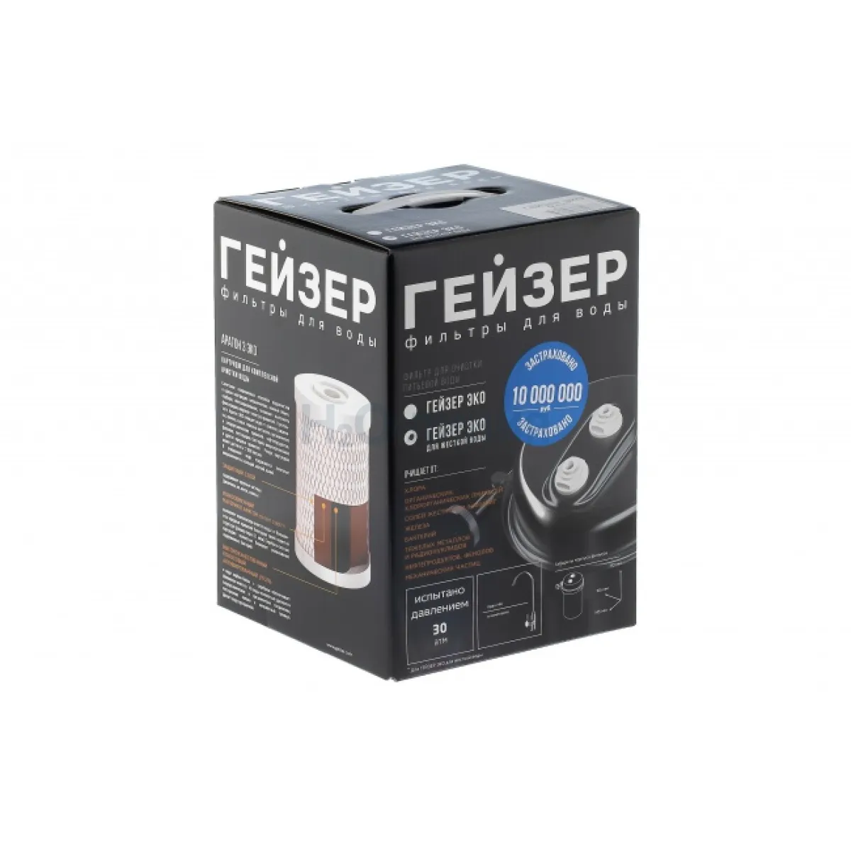 В фильтре Гейзер Эко для жесткой воды реализованы все известные методы очистки воды: механическая фильтрация, ионный обмен, сорбция, обезжелезивание и обеззараживание.