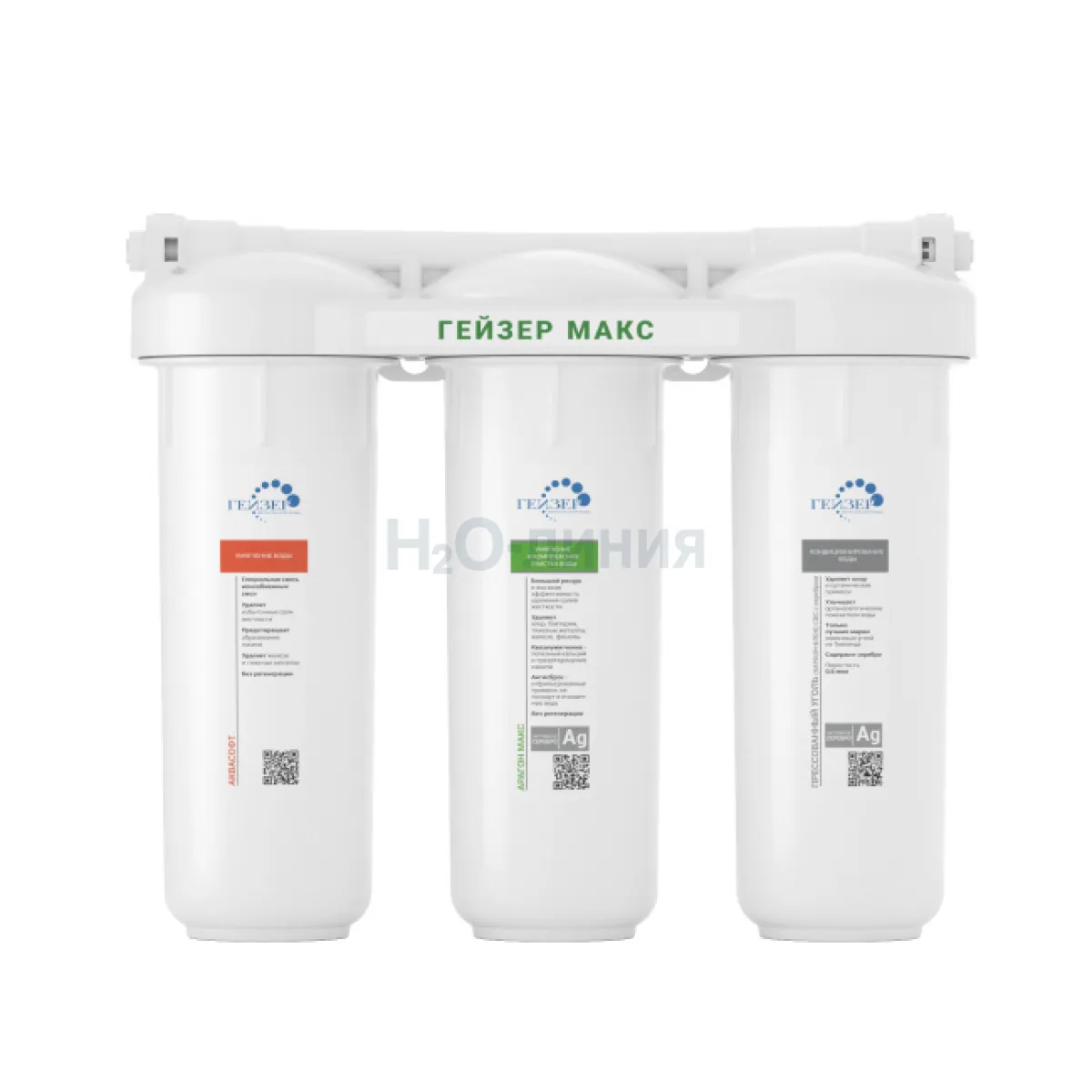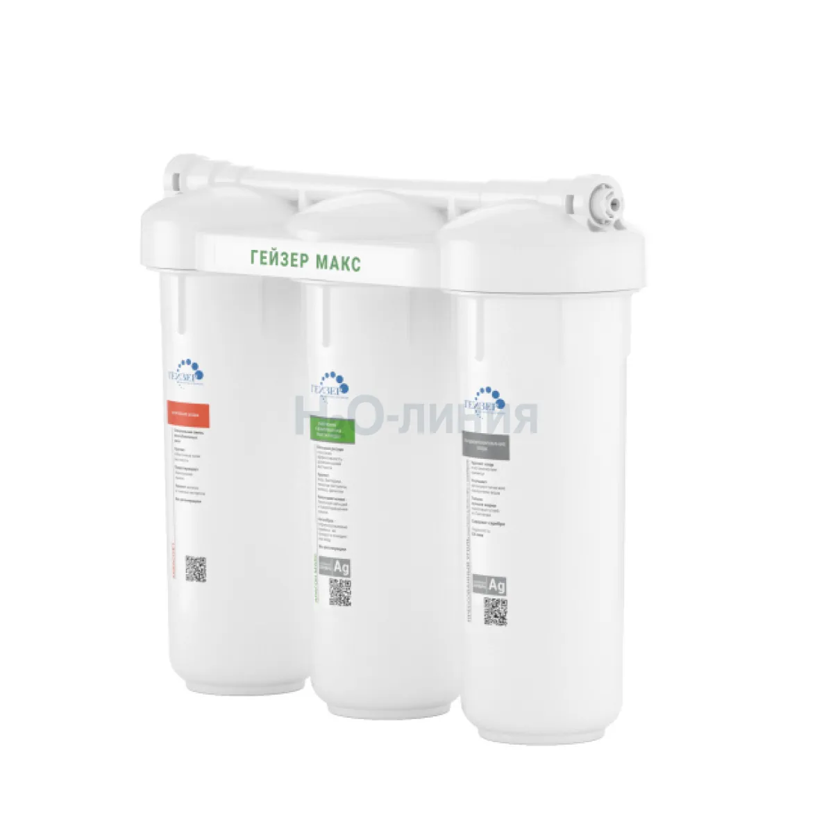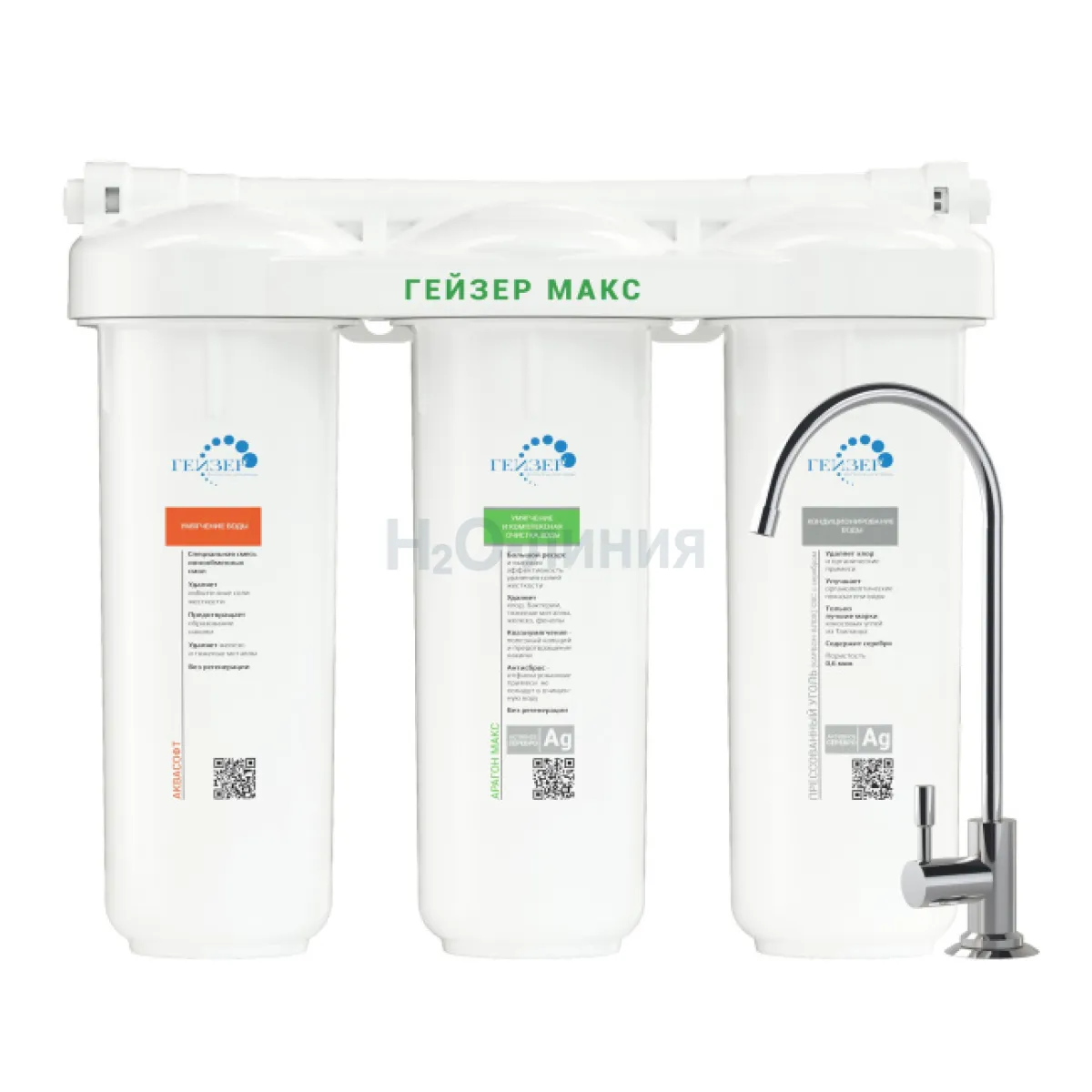 В фильтрах серии Гейзер МАКС реализованы все известные методы очистки воды: механическая фильтрация, ионный обмен, сорбция, обезжелезивание и обеззараживание.