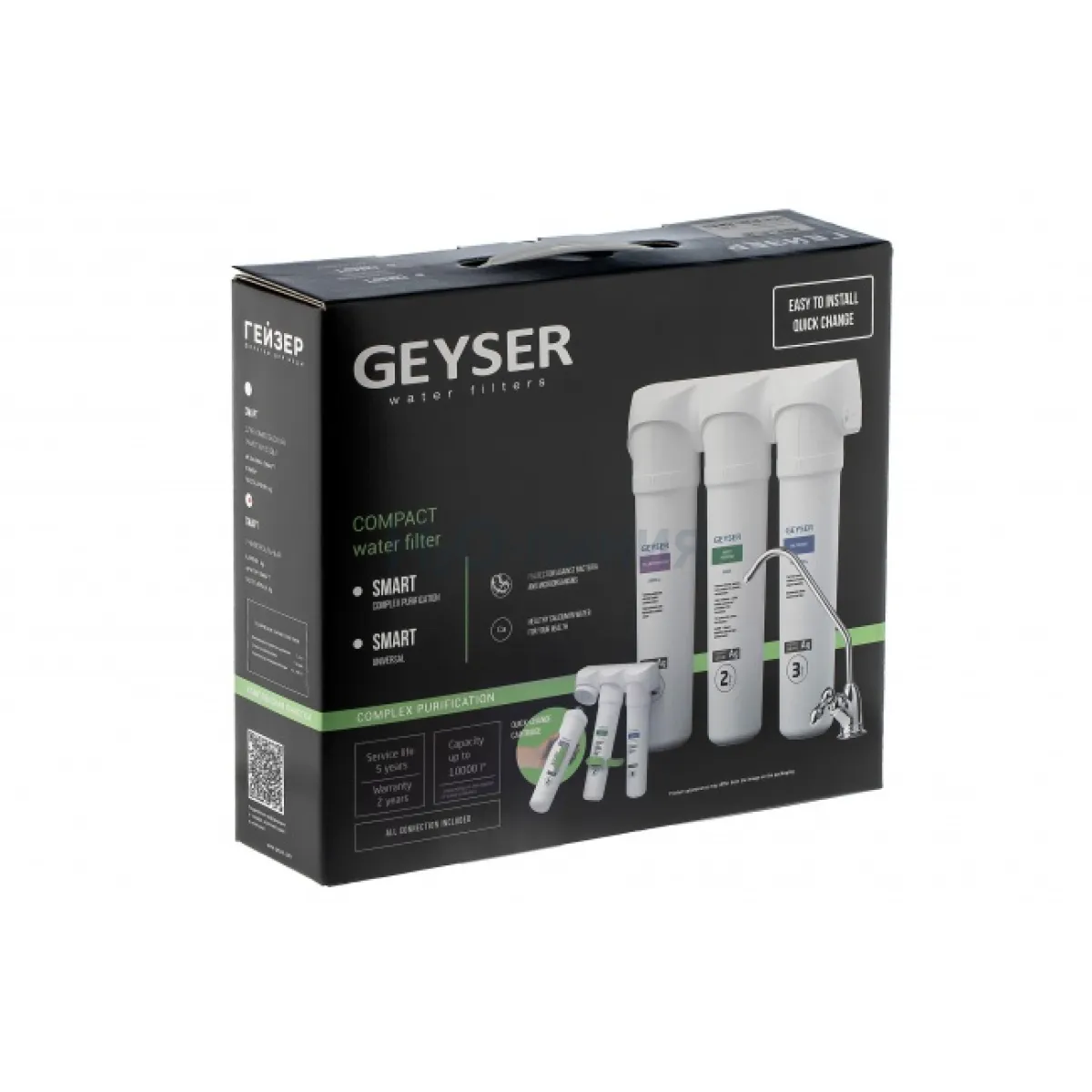 Компактная система Гейзер Смарт обеспечивает гарантированно высокую и эффективную степень очистки воды на протяжении всего срока службы. Благодаря сочетанию свойств материалов Каталон и Арагон, фильтры Гейзер Смарт удаляют все нежелательные загрязнения и делают воду безопасной и полезной для здоровья. Наличие быстросъемных фильтрующих модулей обеспечивает простоту и удобство обслуживания фильтра.