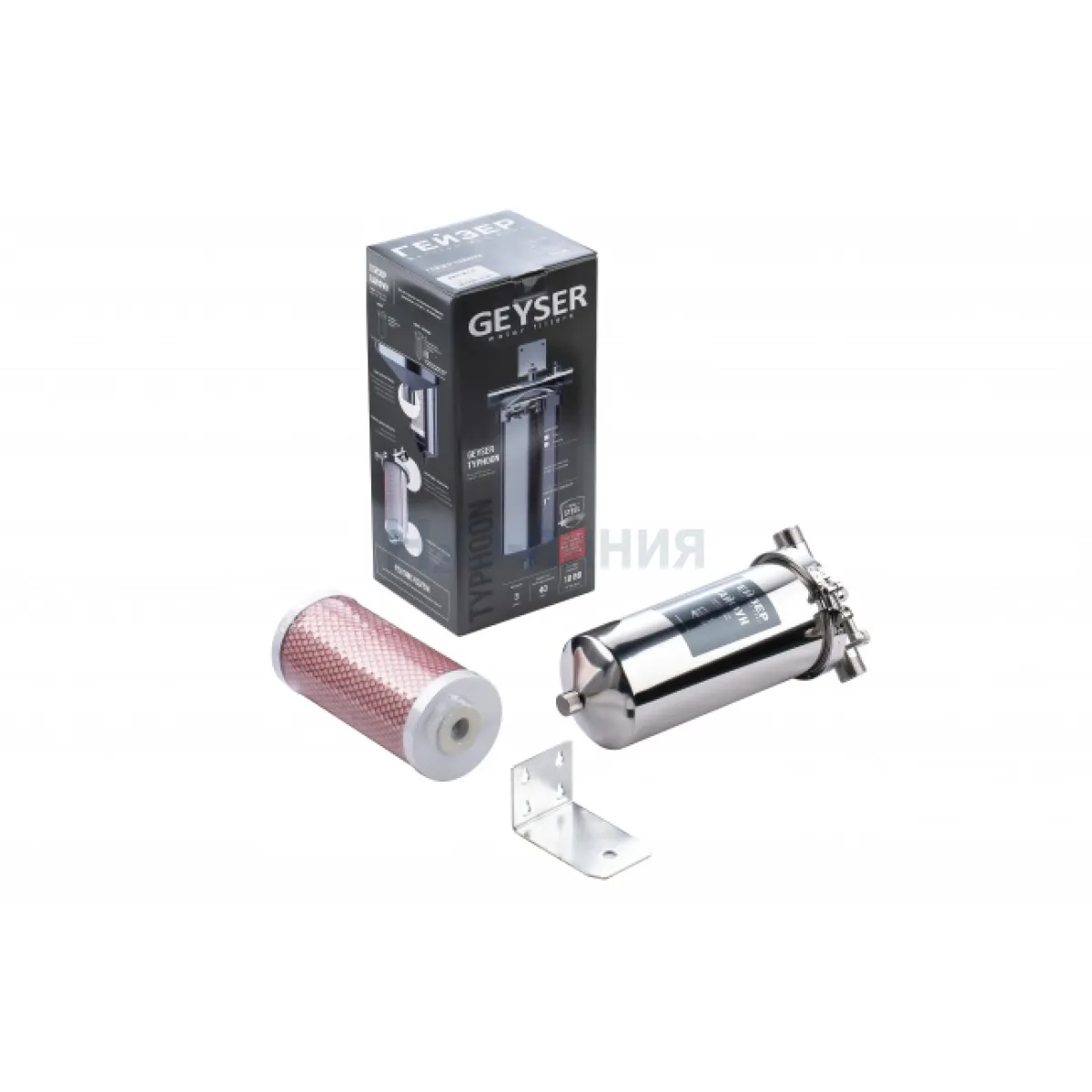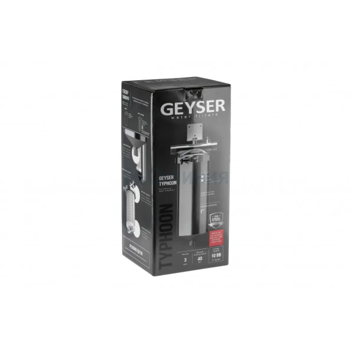 Гейзер Тайфун 10ВВ – универсальный магистральный фильтр для комплексной очистки горячей и холодной воды (с низким и средним уровнем минерализации) во всей квартире или загородном доме. Корпус фильтра выполнен из высококачественной нержавеющей стали марки 304L. Внизу корпуса находится клапан слива воды для удобной замены картриджа. В комплекте картридж Арагон 3 10BB.