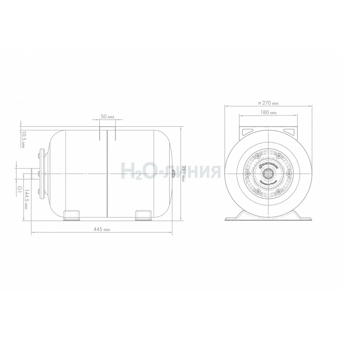 Гидроаккумулятор предохраняет насос от частого включения, что способствует увеличению ресурса насоса. Снижает вероятность появления гидроудара в системе. При отключении напряжения в сети выдает накопленный запас воды. Корпус из высококачественной стали. Металлический фланец. Краска с защитой от ультрафиолетовых лучей. Воздушный клапан для контроля давления воздуха. Универсальная площадка для крепления насоса. Горизонтальная компоновка.