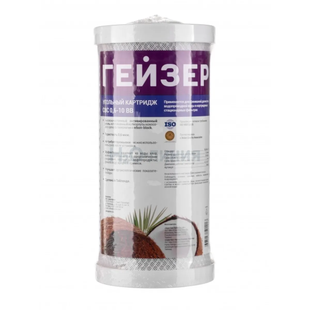 Картридж CBC 0,6 – 10ВВ изготовлен из высококачественного кокосового активированного угля по технологии карбон-блок, что обеспечивает глубокую очистку воды от хлора, органических и хлорорганических соединений. Устраняет неприятные запахи и улучшает вкус воды.