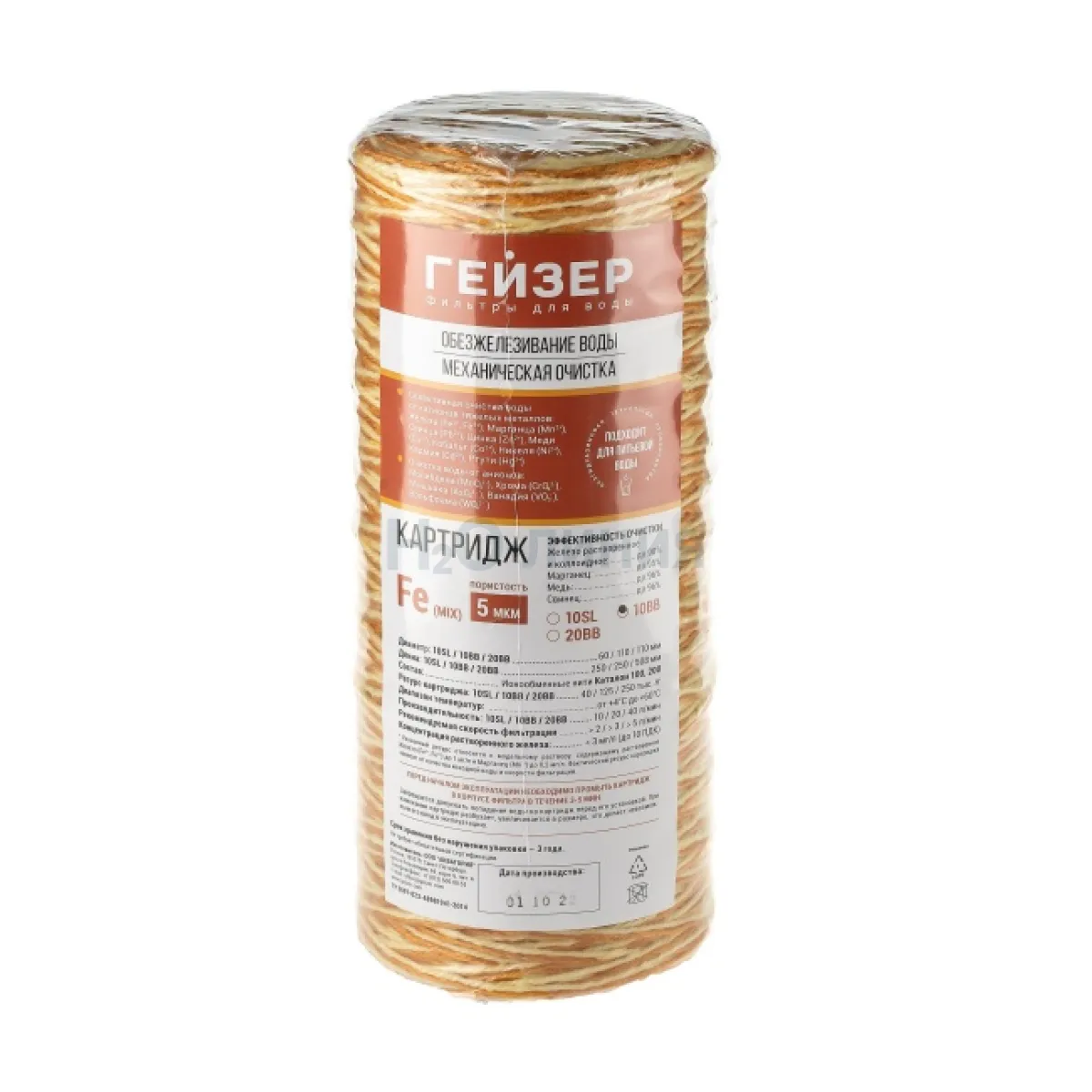 Картридж Fe (mix) - 10BB используется для удаления растворенного и нерастворенного железа, марганца, тяжелых металлов, а также удаляет коллоидное железо.
