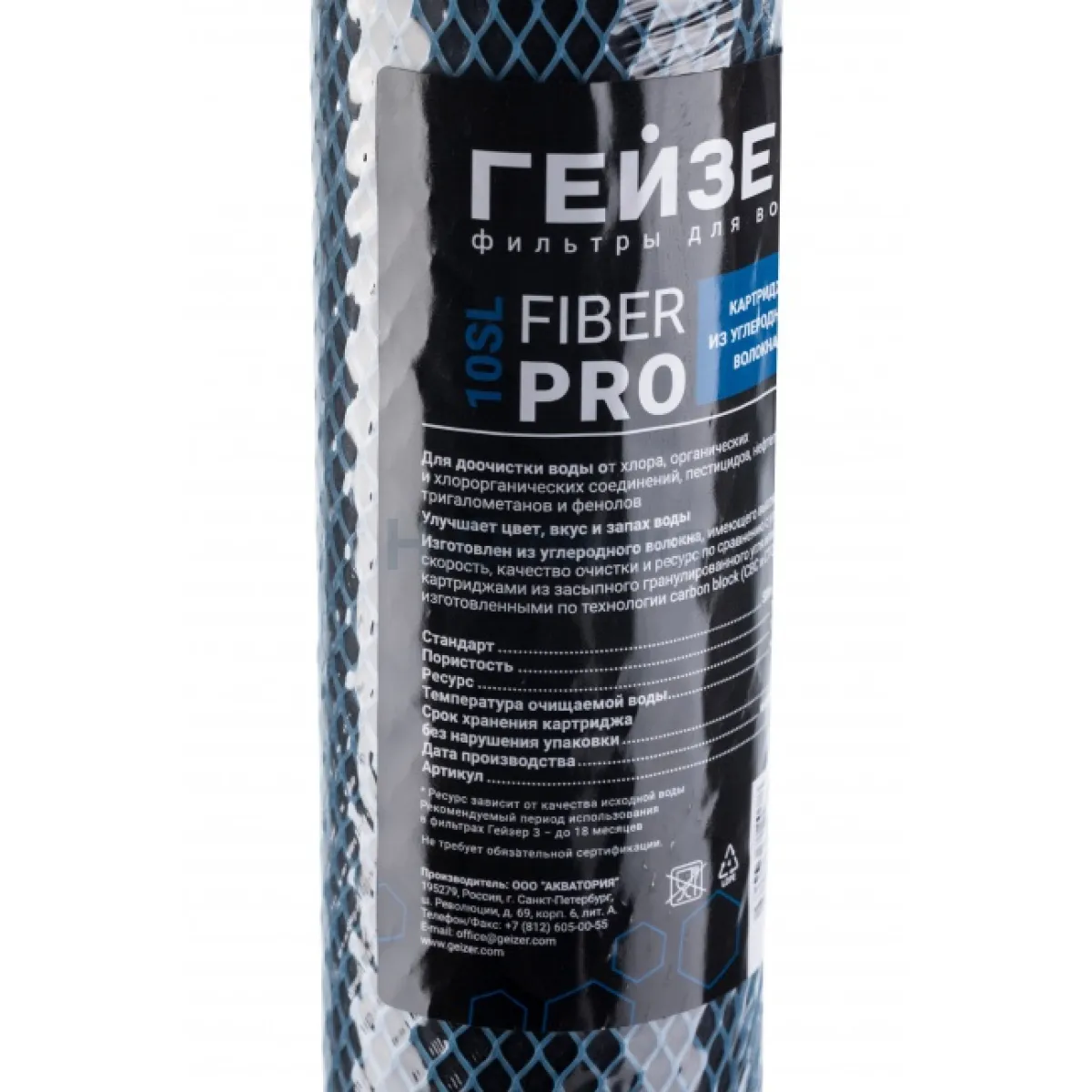 Fiber Pro 10SL – картридж из углеродного волокна. Предназначен для доочистки воды от хлора, органических и хлорорганических соединений, пестицидов, нефтепродуктов, тригалометанов и фенолов. Улучшает органолептические показатели – цвет, вкус и запах воды. Изготовлен из углеродного волокна, имеющего более высокую скорость, качество очистки и ресурс по сравнению с угольными картриджами из засыпного гранулированного угля или изготовленными по технологии Carbon Block (СВС и СТО).