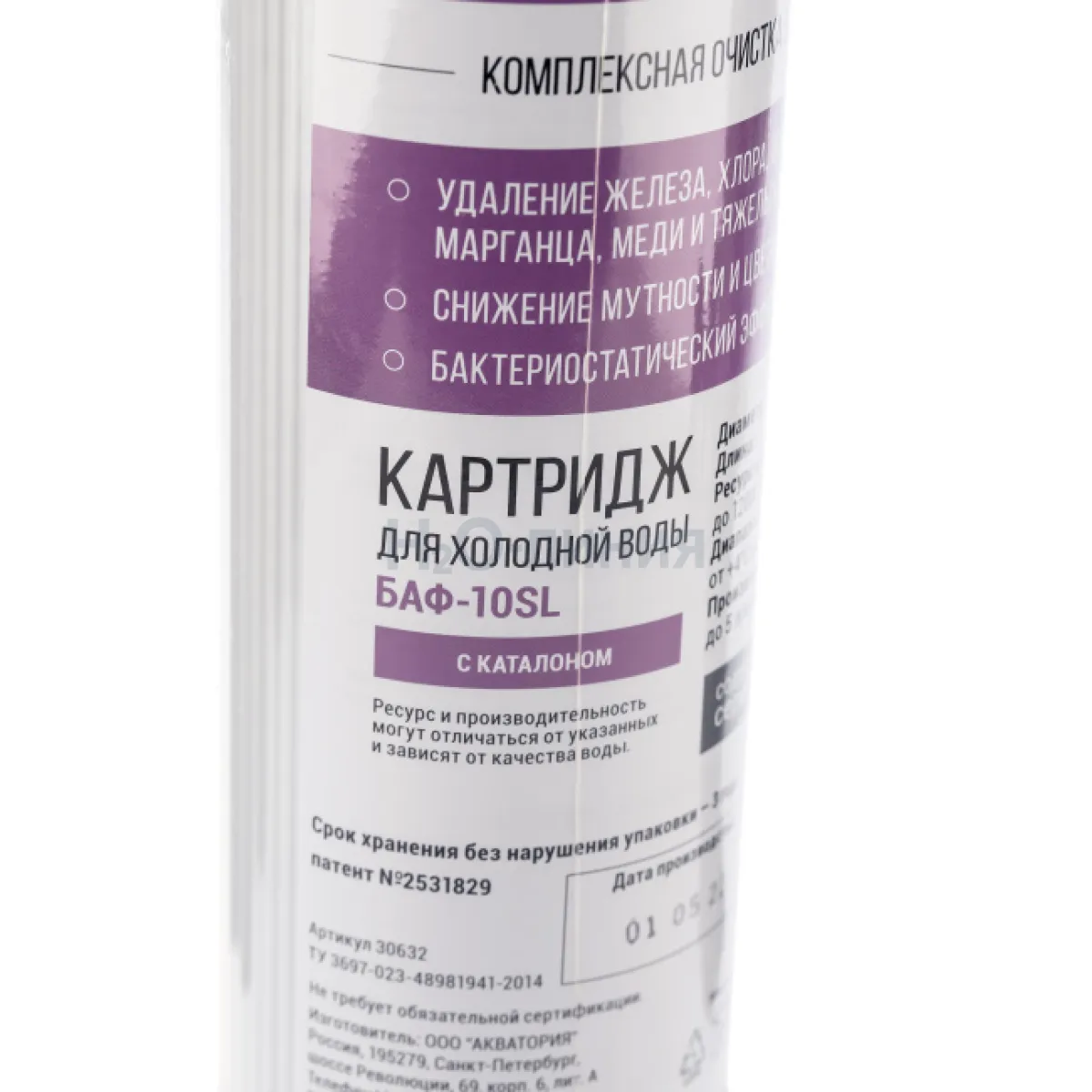 Картридж с мультикомпонентной загрузкой из ионообменных материалов и сорбентов для очистки воды от остаточного хлора, органических соединений, железа (при содержании до 2 мг/л) и других вредных примесей.