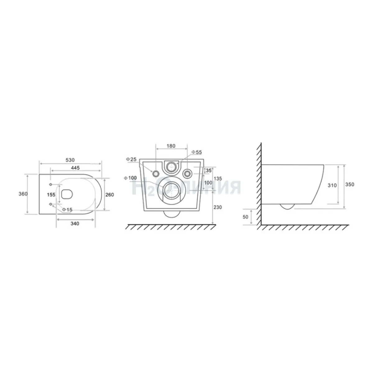 Высота унитаза, мм: