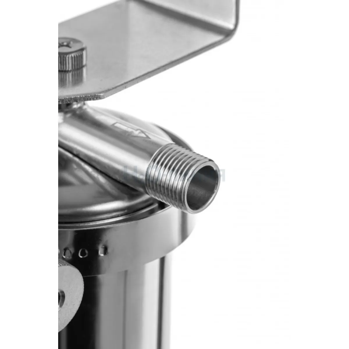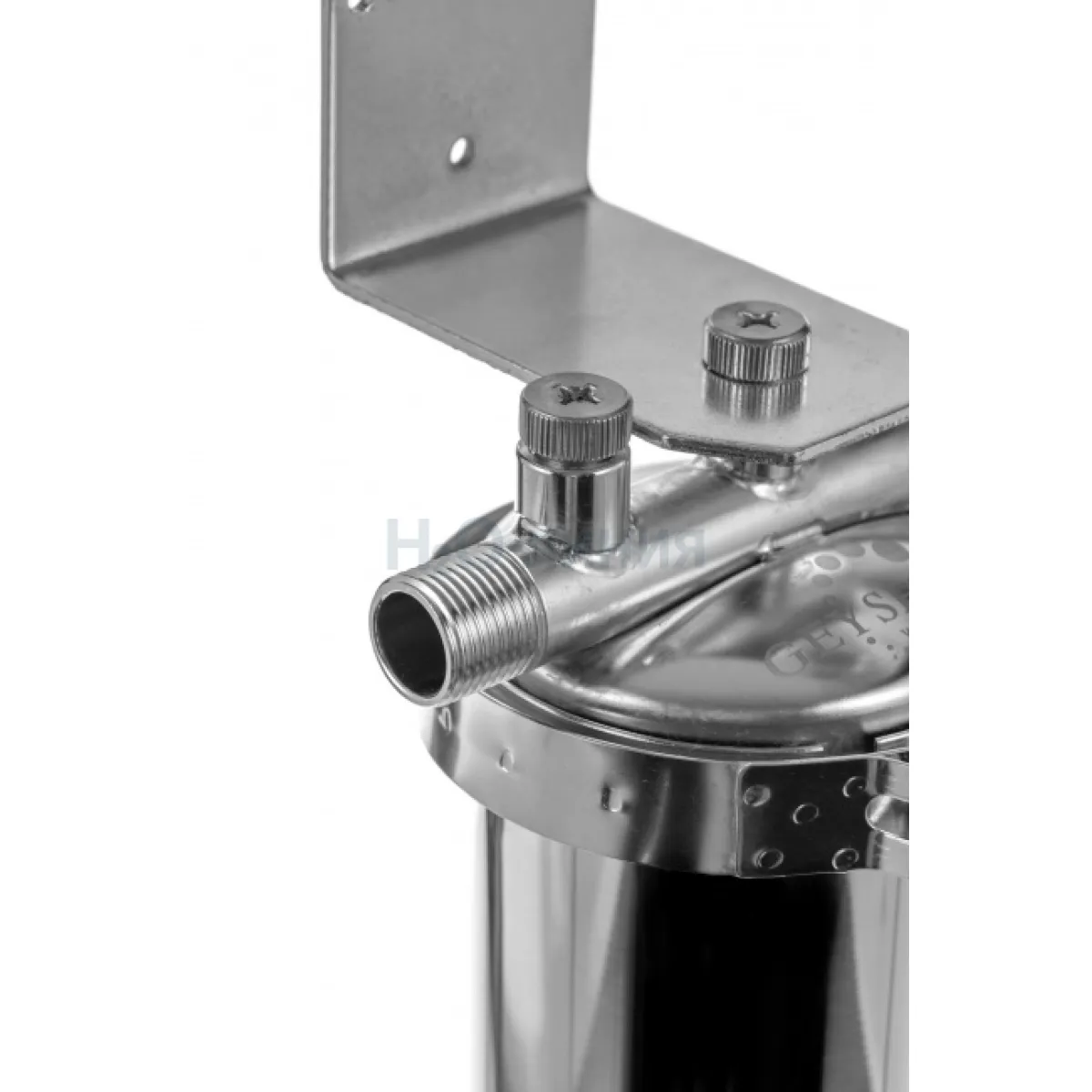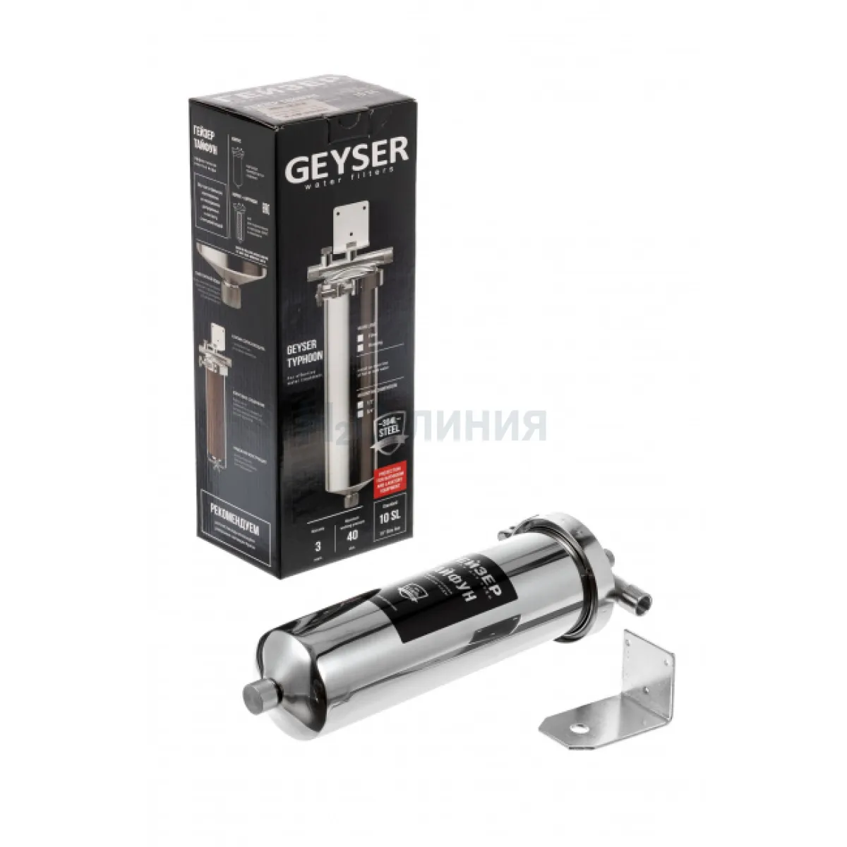 Корпус и крышка фильтра Гейзер Тайфун 10SL 1/2" изготовлены из высококачественной нержавеющей стали марки 304L с металлической скобой. Корпус рассчитан на работу под давлением и установку на входе в систему горячего или холодного водоснабжения. Внизу корпуса находится клапан слива воды для удобной замены картриджа.