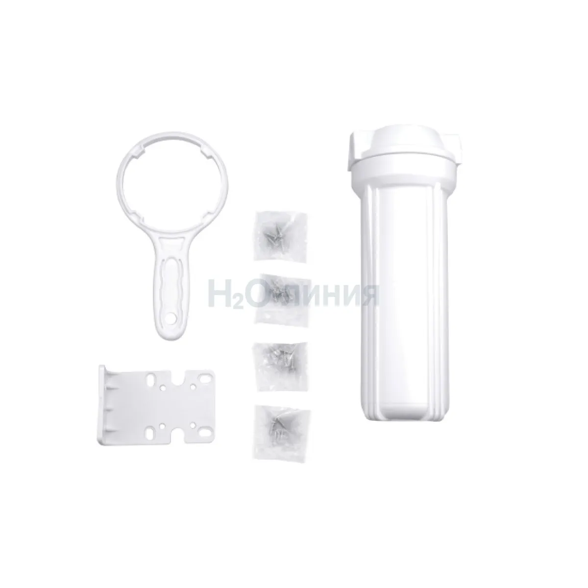 Магистральный корпус выполнен из ударопрочного материала без использования вторичного сырья, что обеспечивает его надежность. В комплекте поставки ключ для замены картриджа, а также пластиковая скоба для фиксации.