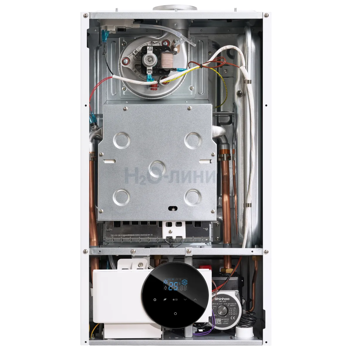 Настенный газовый двухконтурный конвекционный котёл с закрытой камерой сгорания и насосом отопительного контура.