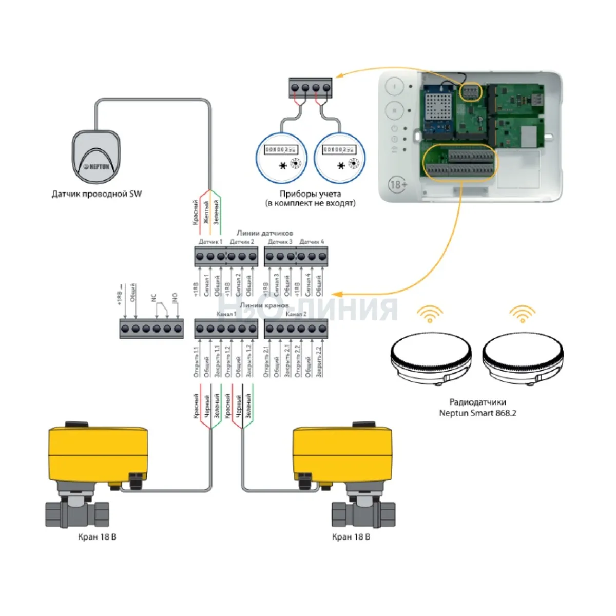 Проводных: 20 шт. на каждую линию; Радиодатчиков: 50 шт. при установленном радиомодуле