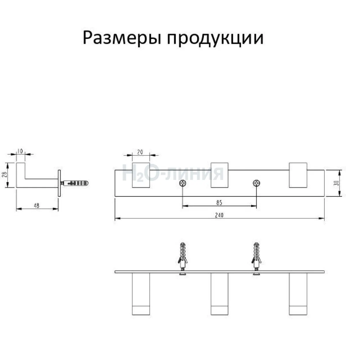 Полотенцедержатель на планке 3-й Grocenberg AC0013 (Графит)