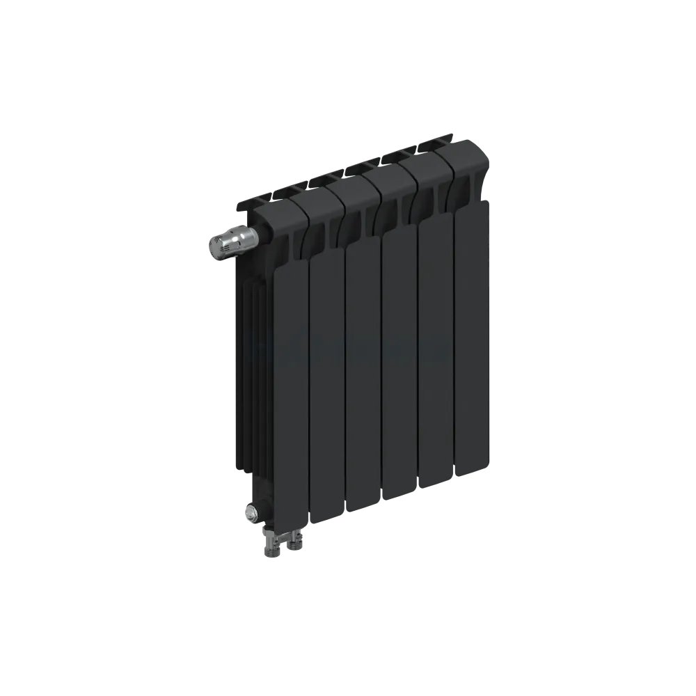 Радиатор биметаллический RIFAR MONOLIT VENTIL 500 х 6 секций АНТРАЦИТ нижнее левое подключение, R-MN-500-06-VL-AN