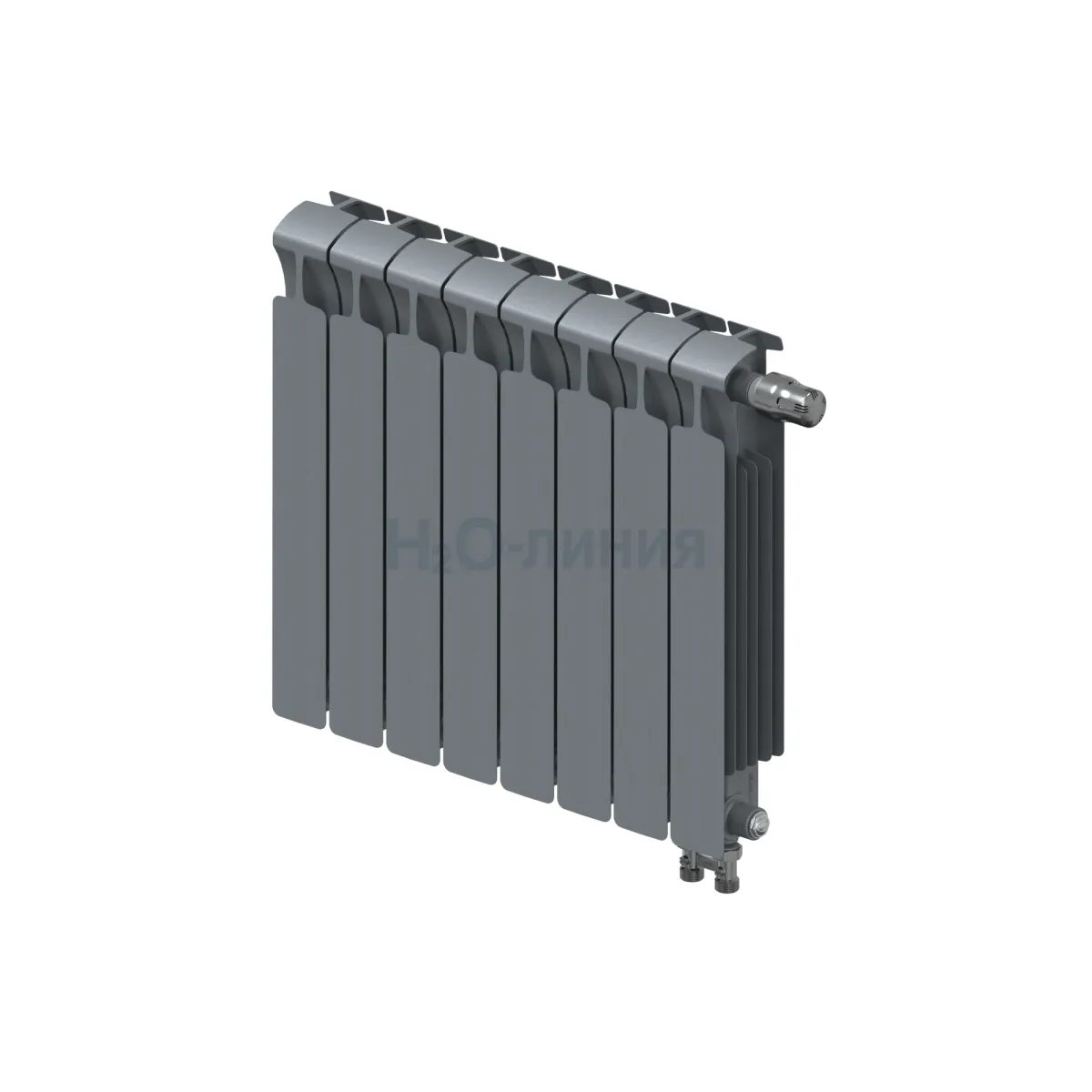 Радиатор биметаллический RIFAR MONOLIT VENTIL 500 х 8 секций ТИТАН нижнее правое подключение, R-MN-500-08-VR-TI