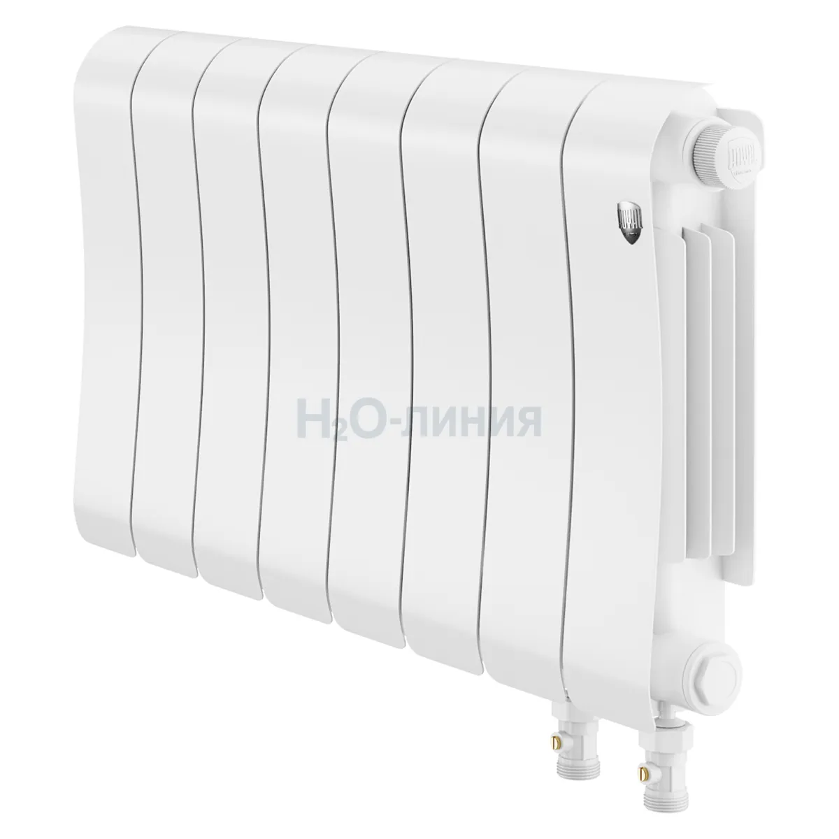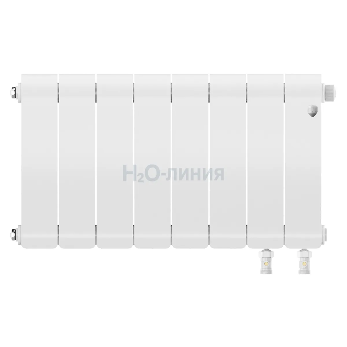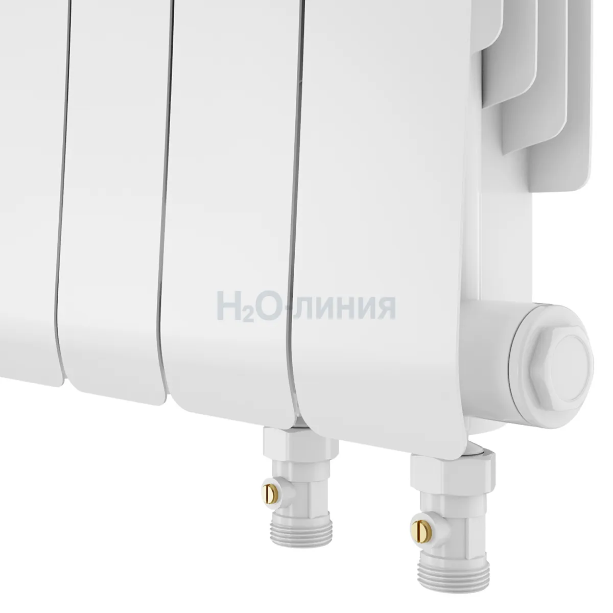 Нижнее подключение: в комплекте вентильная вставка M30x1,5, направляющая потока, кран Маевского в цвет радиатора, гайки с заглушкой в цвет радиатора.