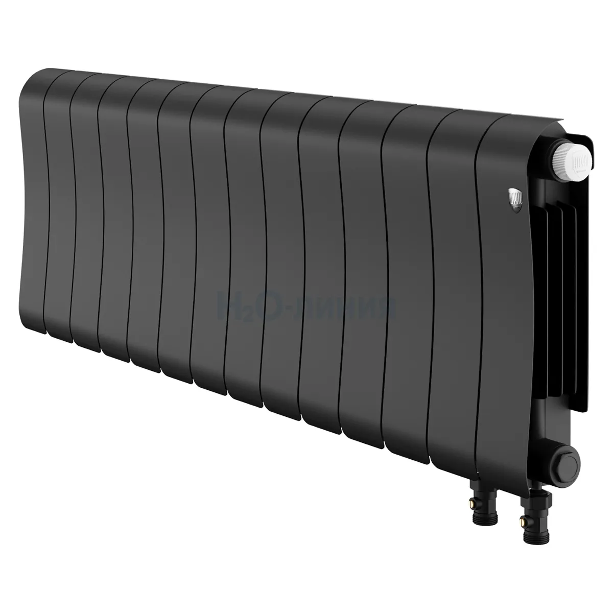 Нижнее подключение: в комплекте вентильная вставка M30x1,5, направляющая потока, кран Маевского в цвет радиатора, гайки с заглушкой в цвет радиатора.