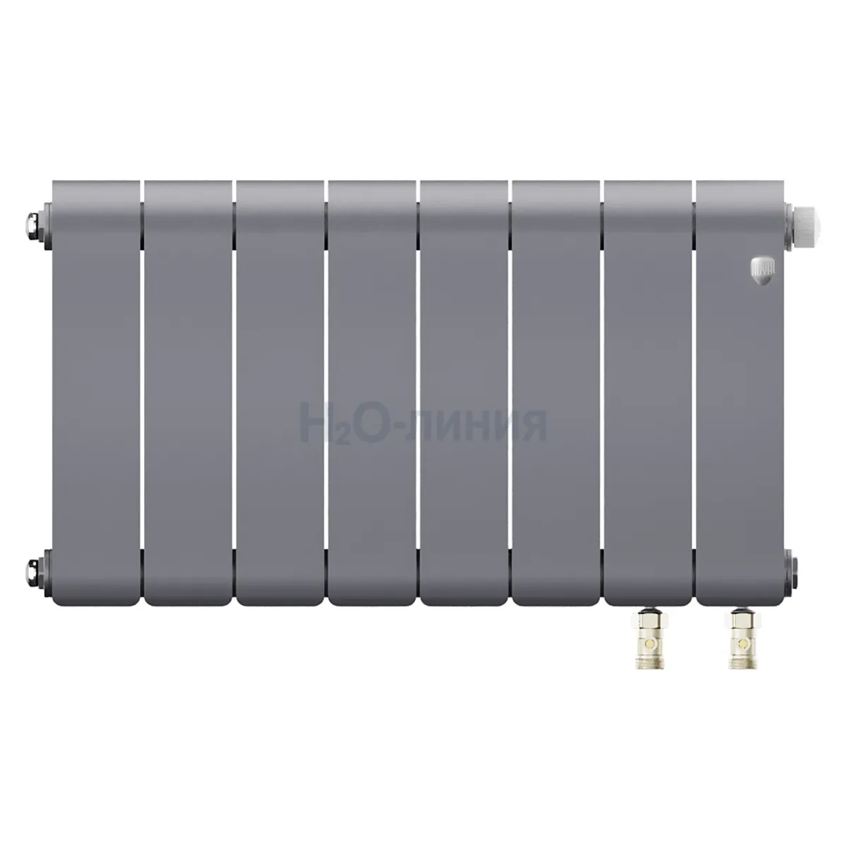 Нижнее подключение: в комплекте вентильная вставка M30x1,5, направляющая потока, кран Маевского в цвет радиатора, гайки с заглушкой в цвет радиатора.