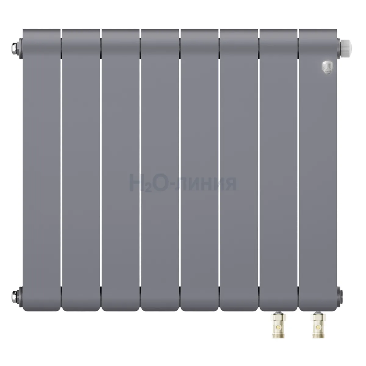 Нижнее подключение: в комплекте вентильная вставка M30x1,5, направляющая потока, кран Маевского в цвет радиатора, гайки с заглушкой в цвет радиатора.