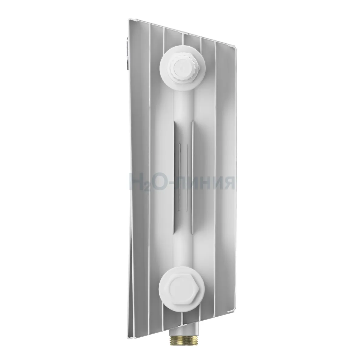 Нижнее подключение: в комплекте вентильная вставка M30x1,5, направляющая потока, кран Маевского в цвет радиатора, гайки с заглушкой в цвет радиатора.