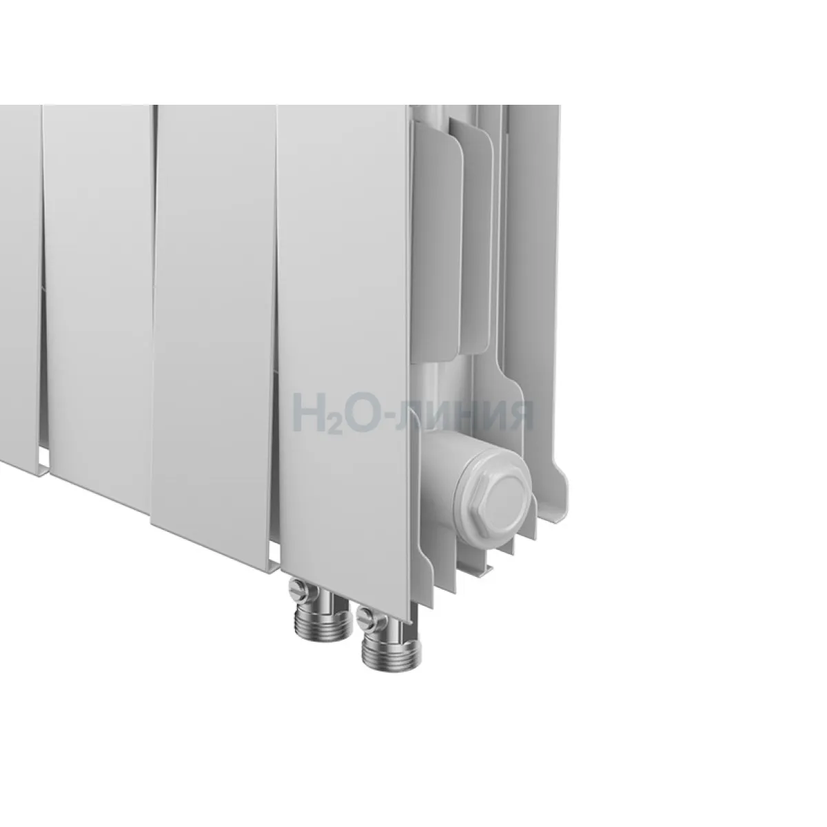 Нижнее подключение: в комплекте вентильная вставка M30x1,5, направляющая потока, кран Маевского в цвет радиатора, гайки с заглушкой в цвет радиатора.