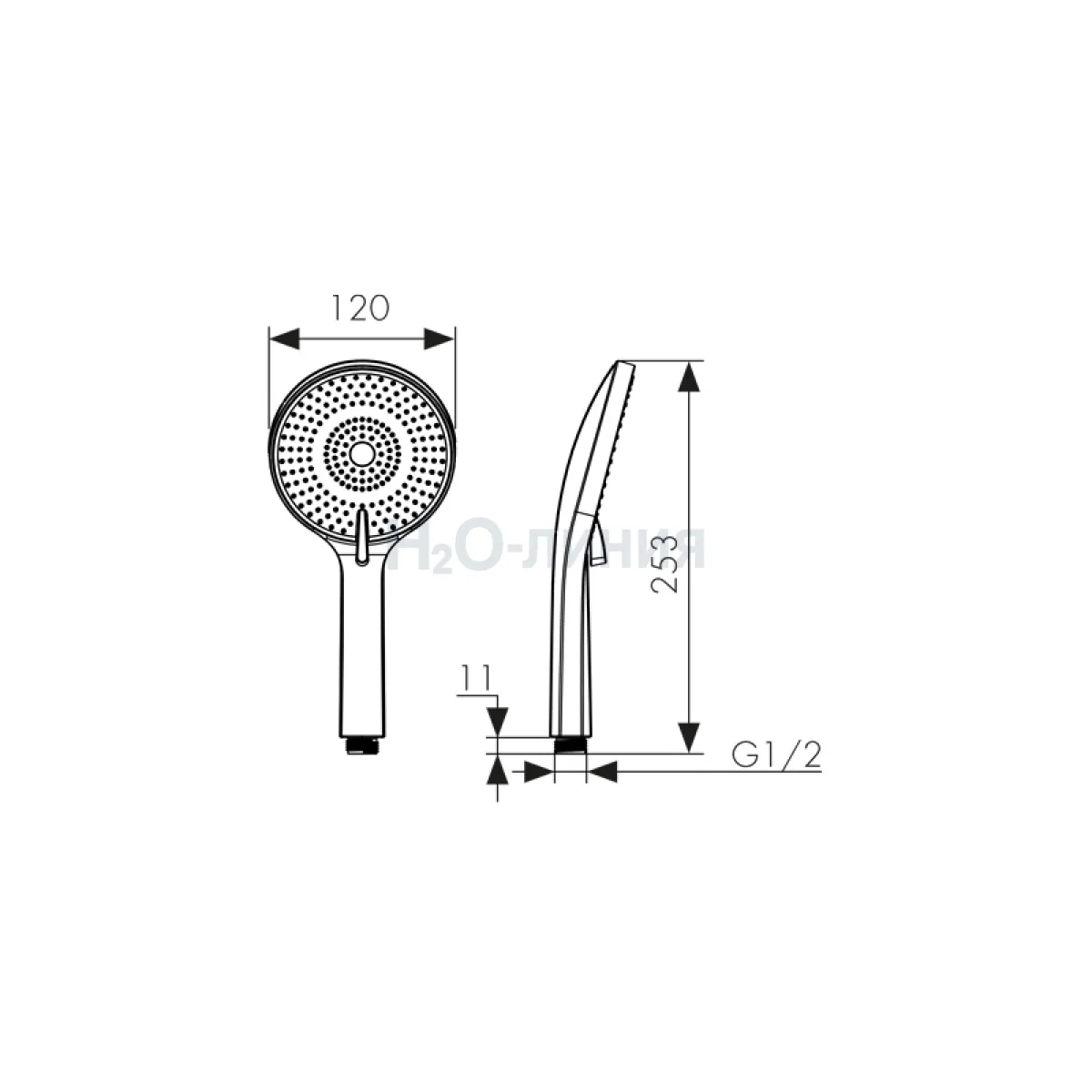 Размер ручной лейки, мм:
