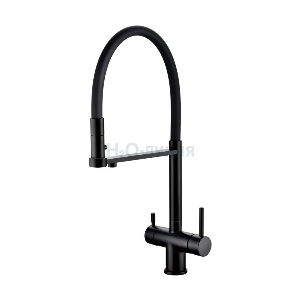 Смеситель для кухни Grocenberg GB4095 с гибким изливом черный матовый
