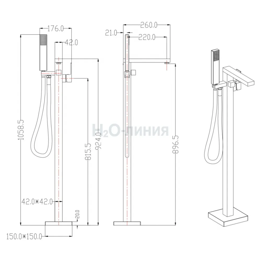 Смеситель для ванны Напольный Grocenberg GB800BG Графит