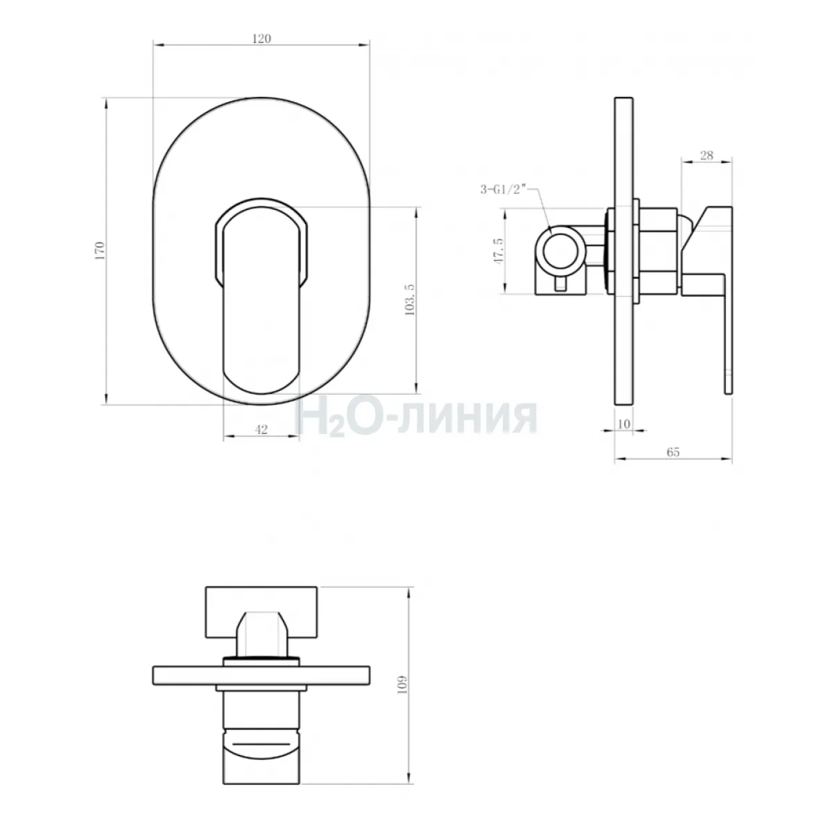 Вылет от стены 6,5 см.