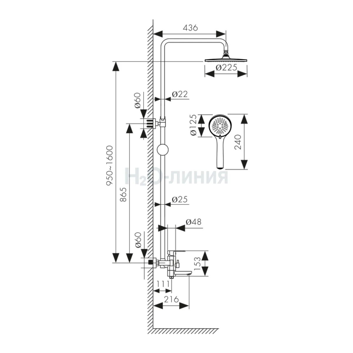 Длина излива, мм: