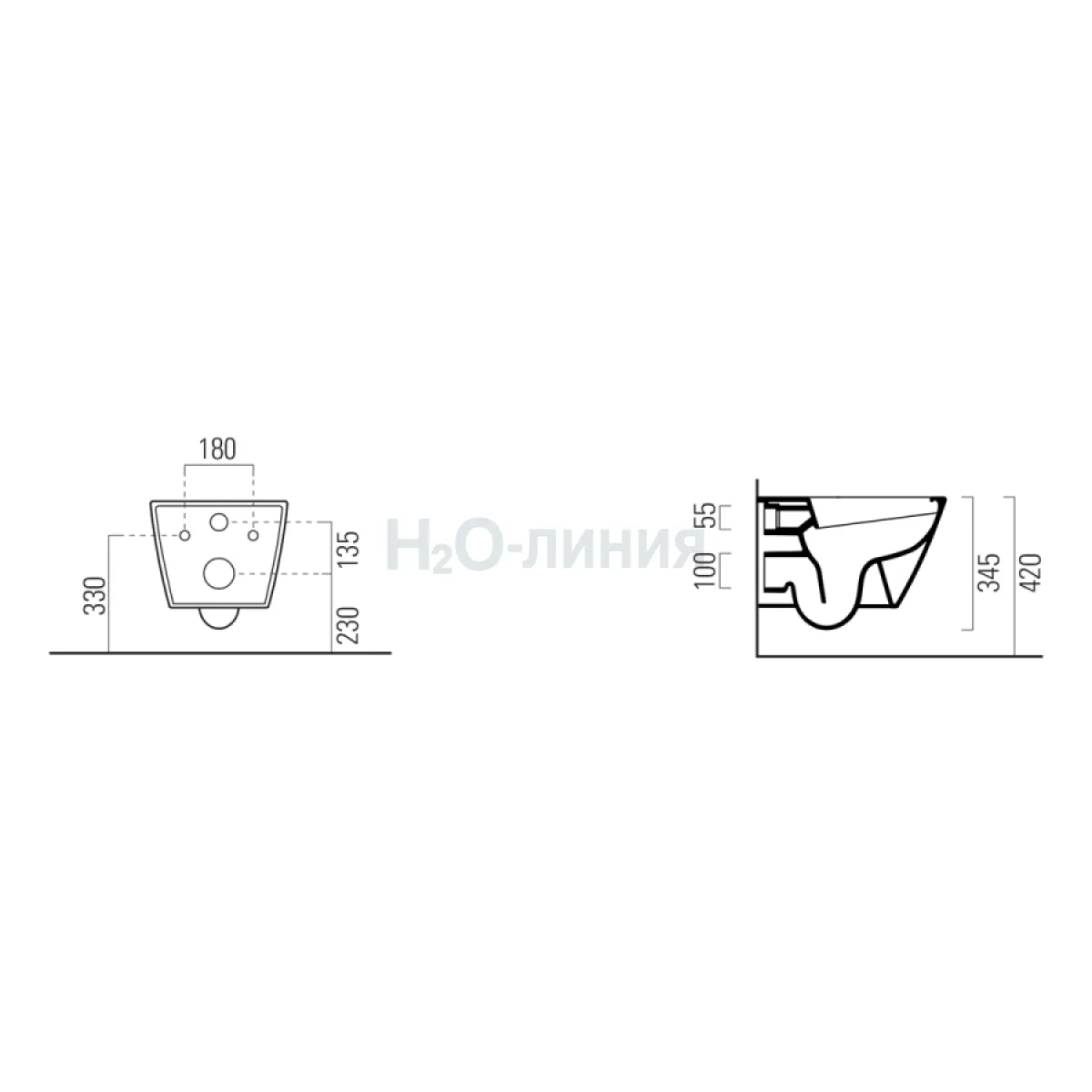 Глубина унитаза, мм: