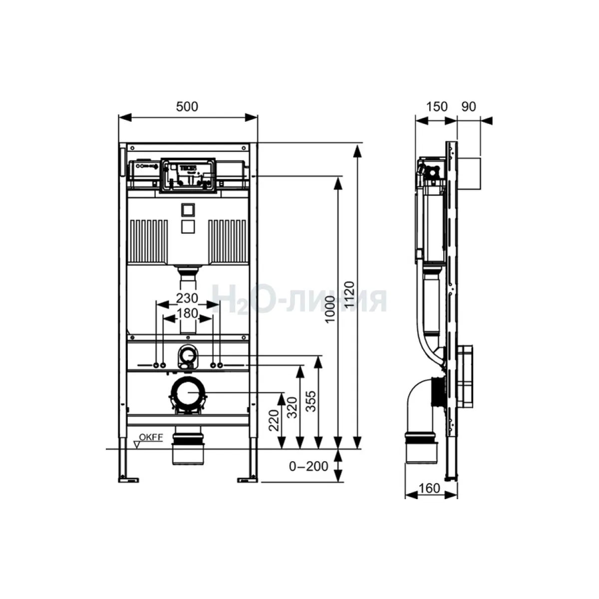 Держатель канализационного отвода расположенный на нижней поперечине облегчает присоединение сливной трубы к модулю. Y-образные фиксаторы в держателе канализационного отвода улучшают фиксацию и предотвращают скручивание смывной трубы.